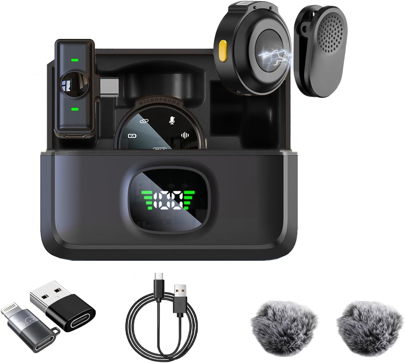 - What You Get: 2*TX (2 Transmitters) + 1*RX(1 Receiver ) +2*Adapter+2*Windscreen+ Charging Case + 2*Charging cable + Instruction.