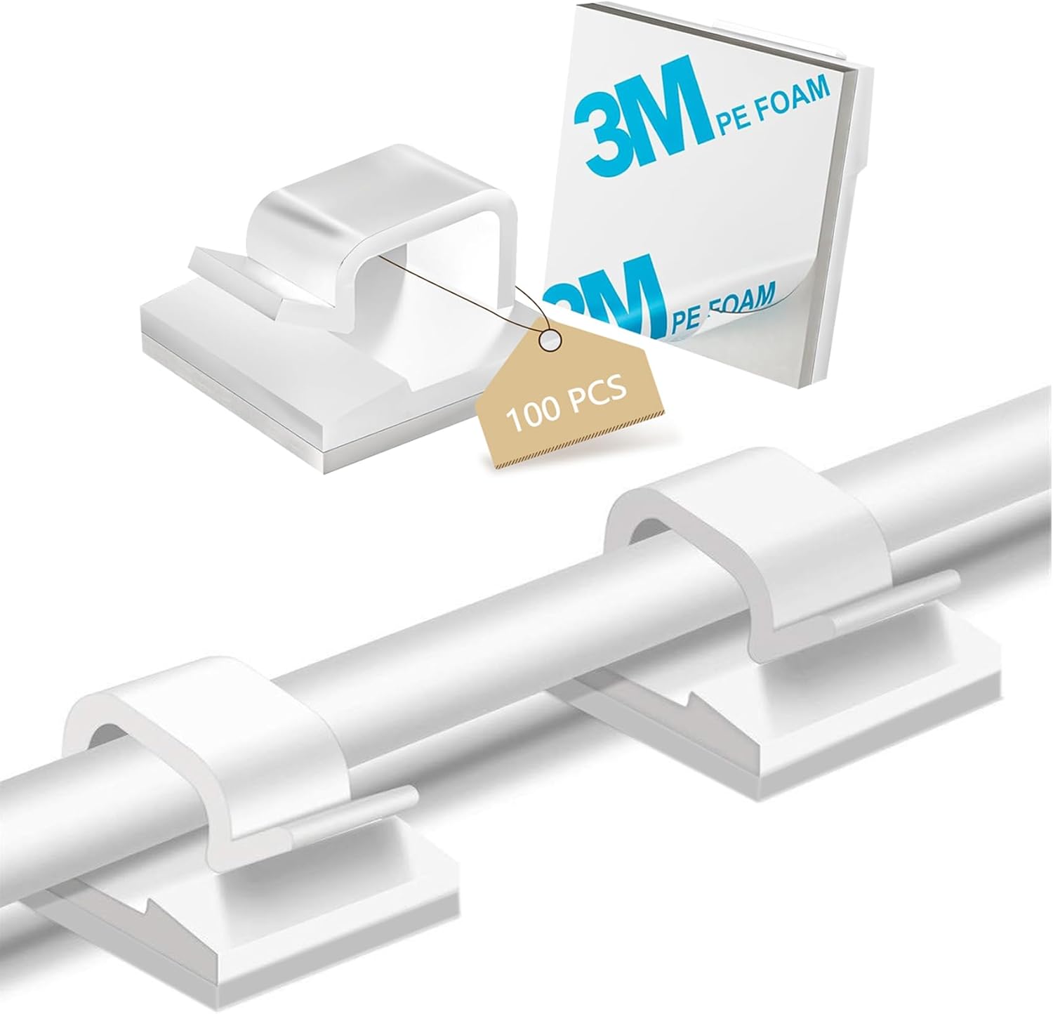 100PCS Adhesive Cable Clips, Wire Holder Organizer, Cord Management, Cable Staples, Christmas String Lights, White, Small