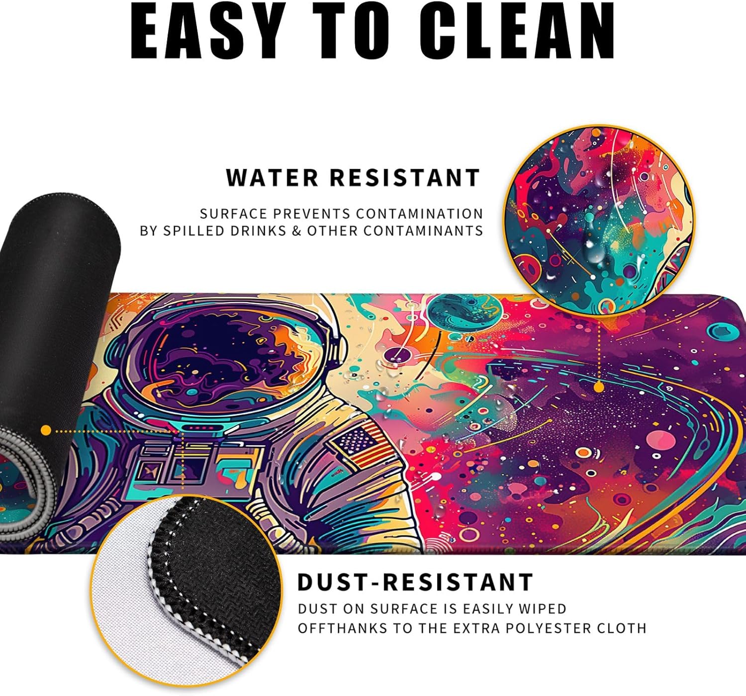 Desk Mat Colorful Space Desk Accessories Astronaut Extended Gaming Mouse Desk Pad Decorations for Office Keyboard Mousepad Mat31.5x11.8in, Stitched Edge Non-Slip Bottom Large Mouse Pad