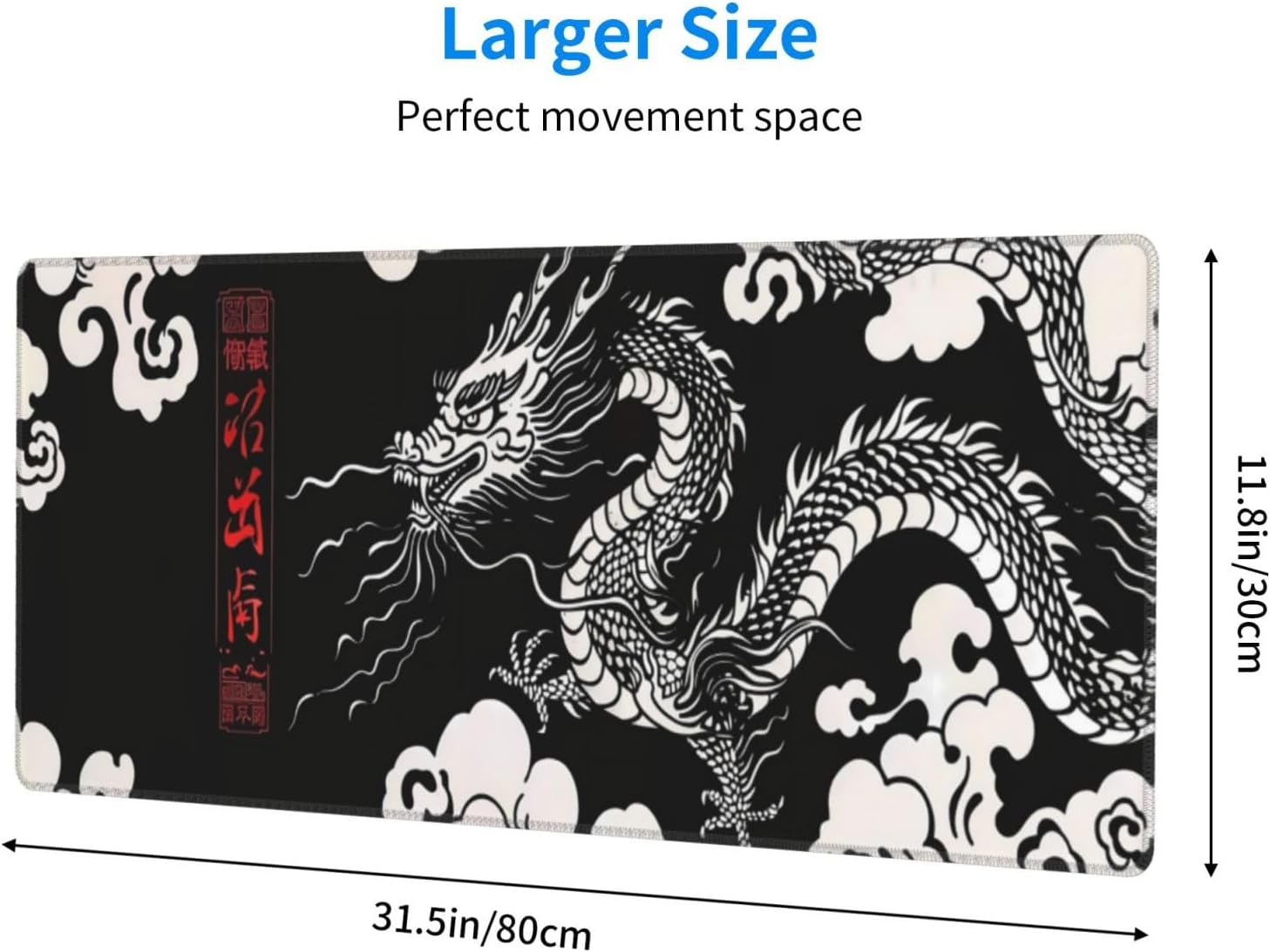 Gaming Mouse Pad Desk Pad,Extended Big Mouse Pad,31.5x11.8 Inch Long Computer Keyboard Mouse Mat Mousepad with 3mm Non-Slip Base and Stitched Edge for Gaming and Office⦠(Loong)