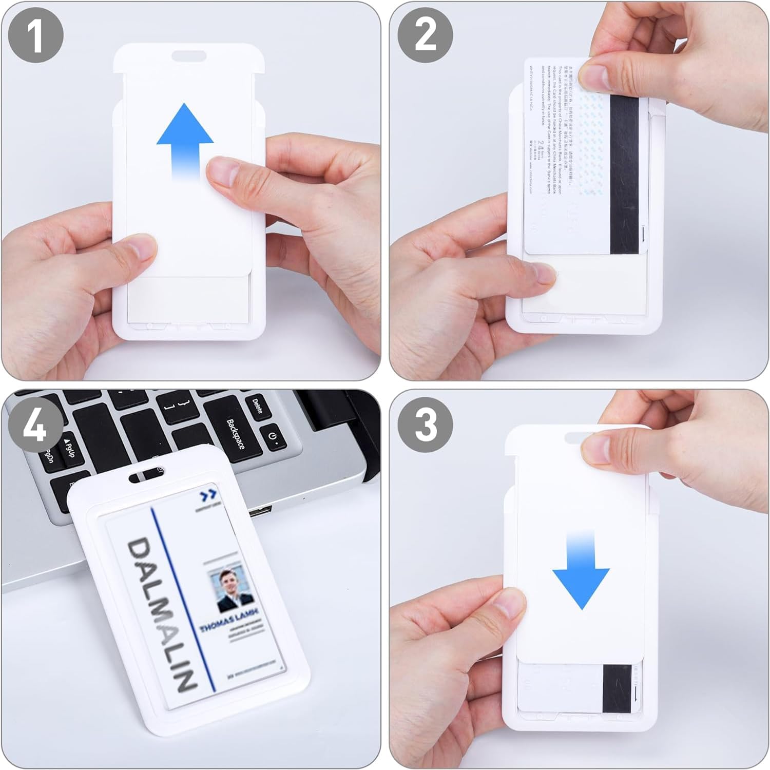 - Widely Used: Suitable for a wide range of professionals. Such as office staff, healthcare workers, maintenance workers, students, doctors, etc. Simply thread a buckle or string through the top slot, the id card holder is ready for use, making it very convenient.