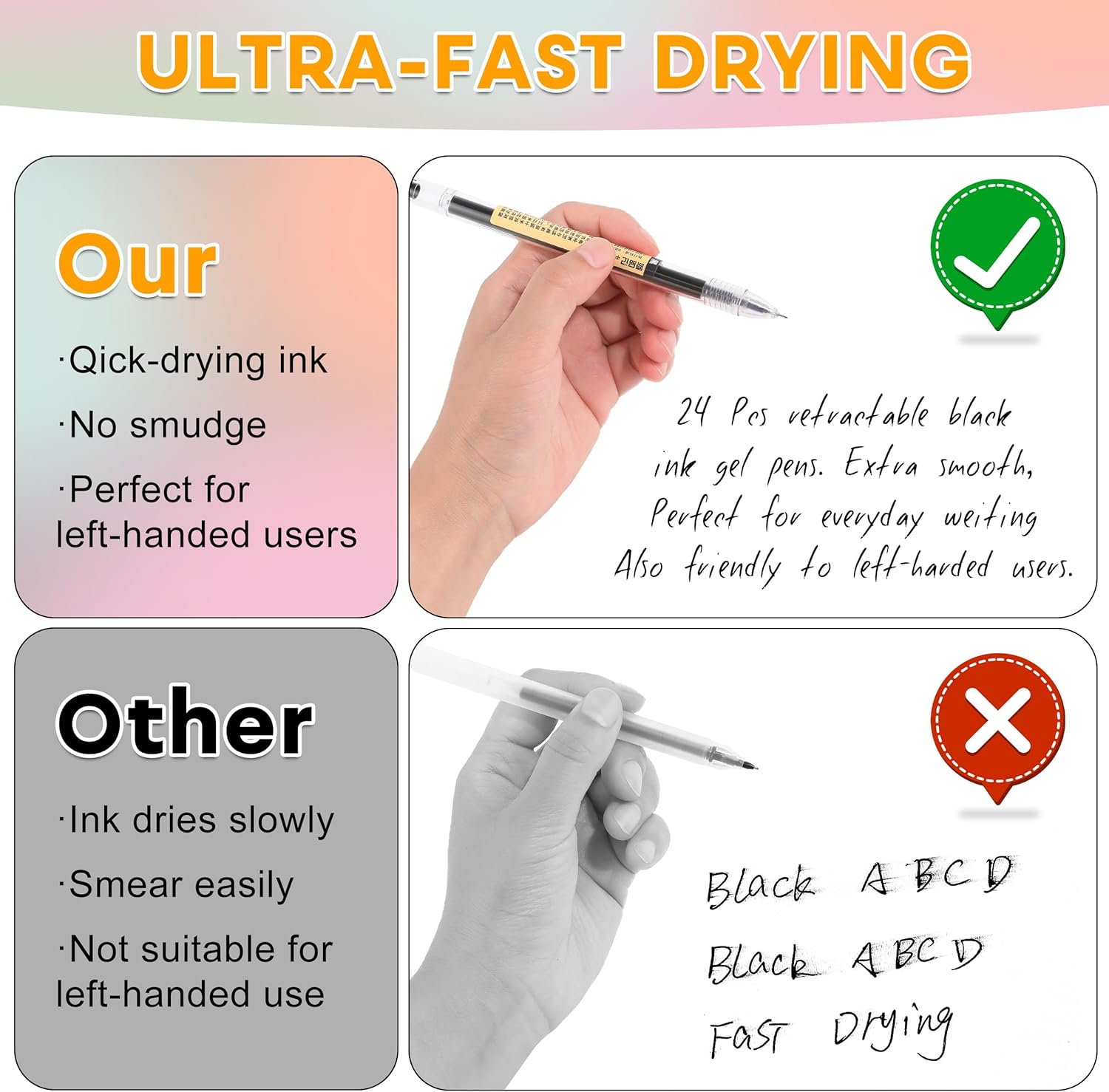 - Fine Writing Experience:This set of 24 bulk(15 black+5 blue+4 red), 0.35 mm thin lined gel pens with ultra fine point pen offers smooth writing, similar to premium rollerball pens. Ideal for bullet journaling, art projects, and office/school note taking, great for calligraphy lovers and journaling enthusiasts, ensuring neat lines.