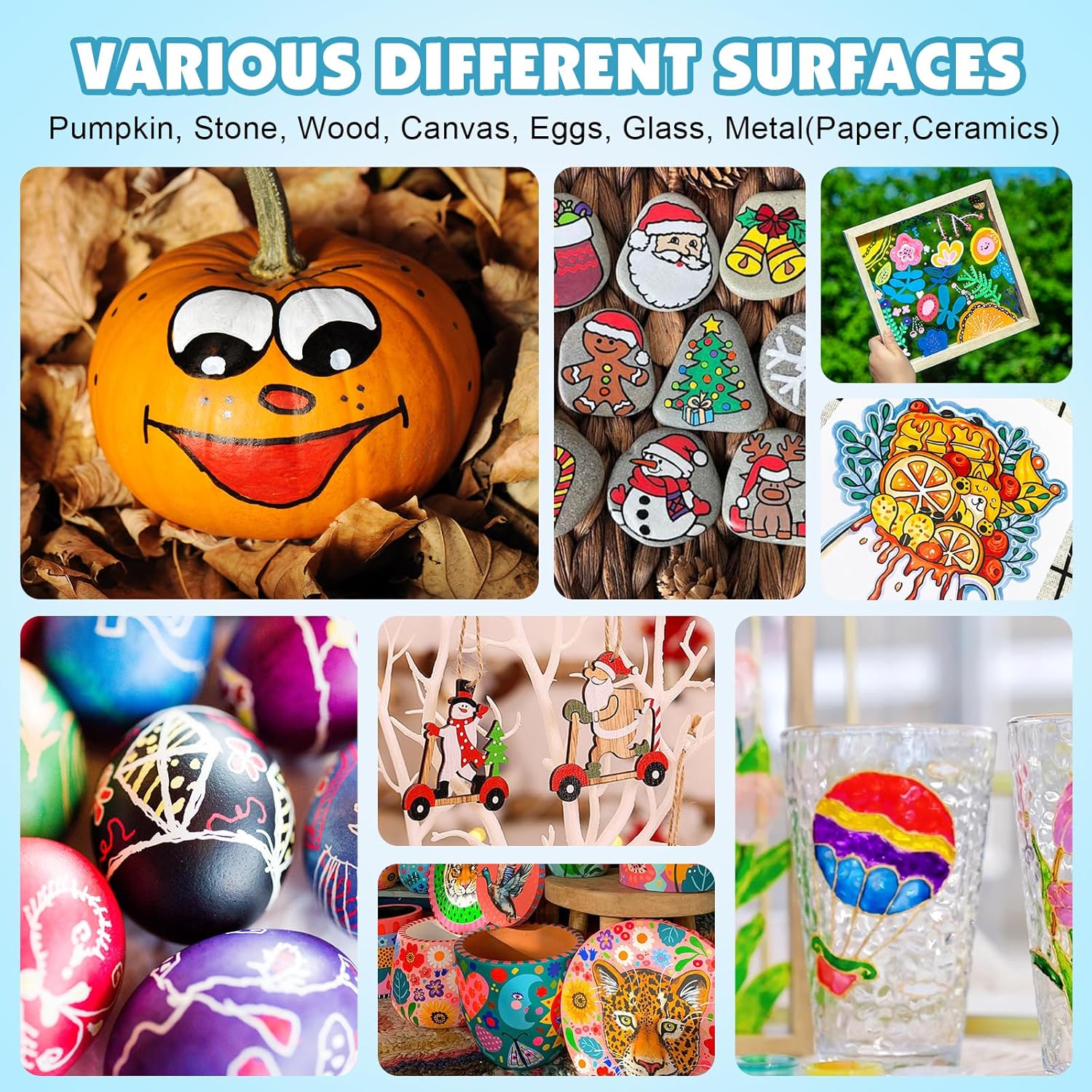 - 【Widely Used】Paint pens acrylic markers have the characteristics of strong coverage,quick drying,and smoothness, making them suitable for various surfaces.such as canvas,wood,metal, rock painting,glasses,plastic,paper,ceramics,and more.