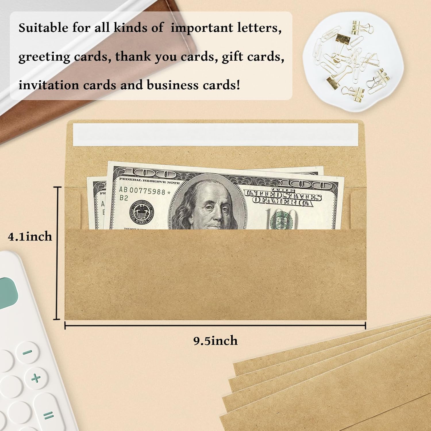 - 【Kraft #10 Business Envelopes】These #10 business envelopes feature a kraft color. The envelopes kit contains 100 pieces 4 1/8 x 9 1/2 Inches kraft envelopes, perfect for your office or home purposes
