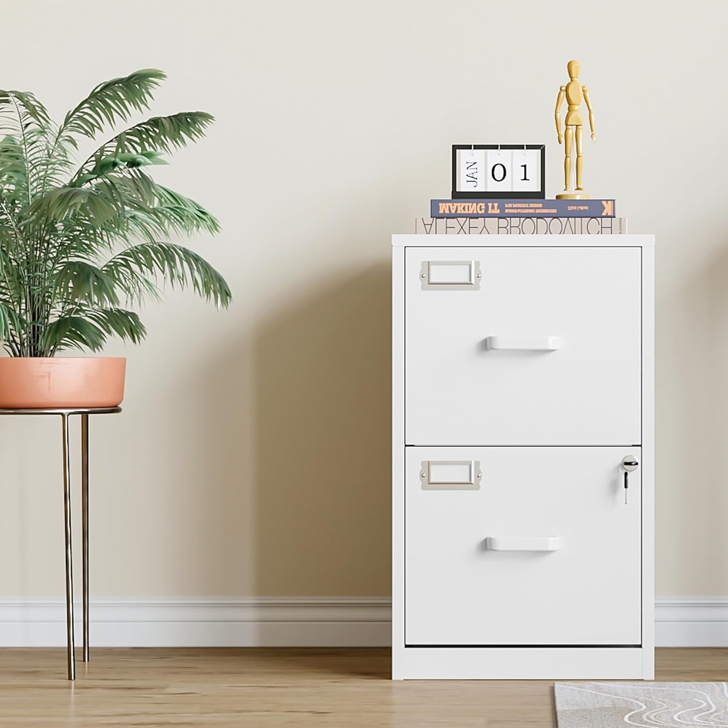 2 Drawer Vertical File Cabinet with Lock, White Metal, Under Desk, Easy Assemble