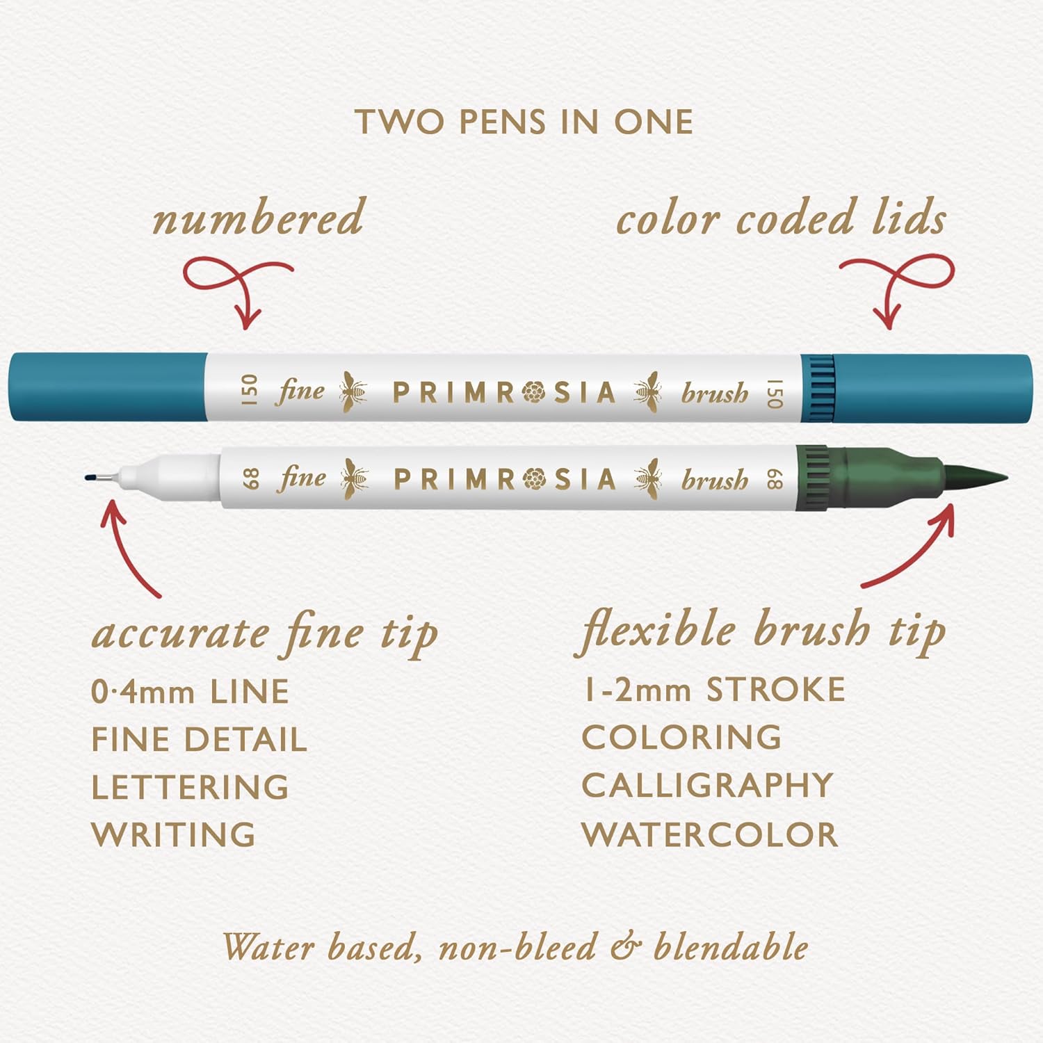 Primrosia 12 Dual Tip Watercolor Marker Pens - Fine Tip & Brush Tips, Professional Quality, 4 x Sticker Sheets, Blendable, Non-Toxic, Perfect for Calligraphy, Drawing & Coloring. (Alpine)