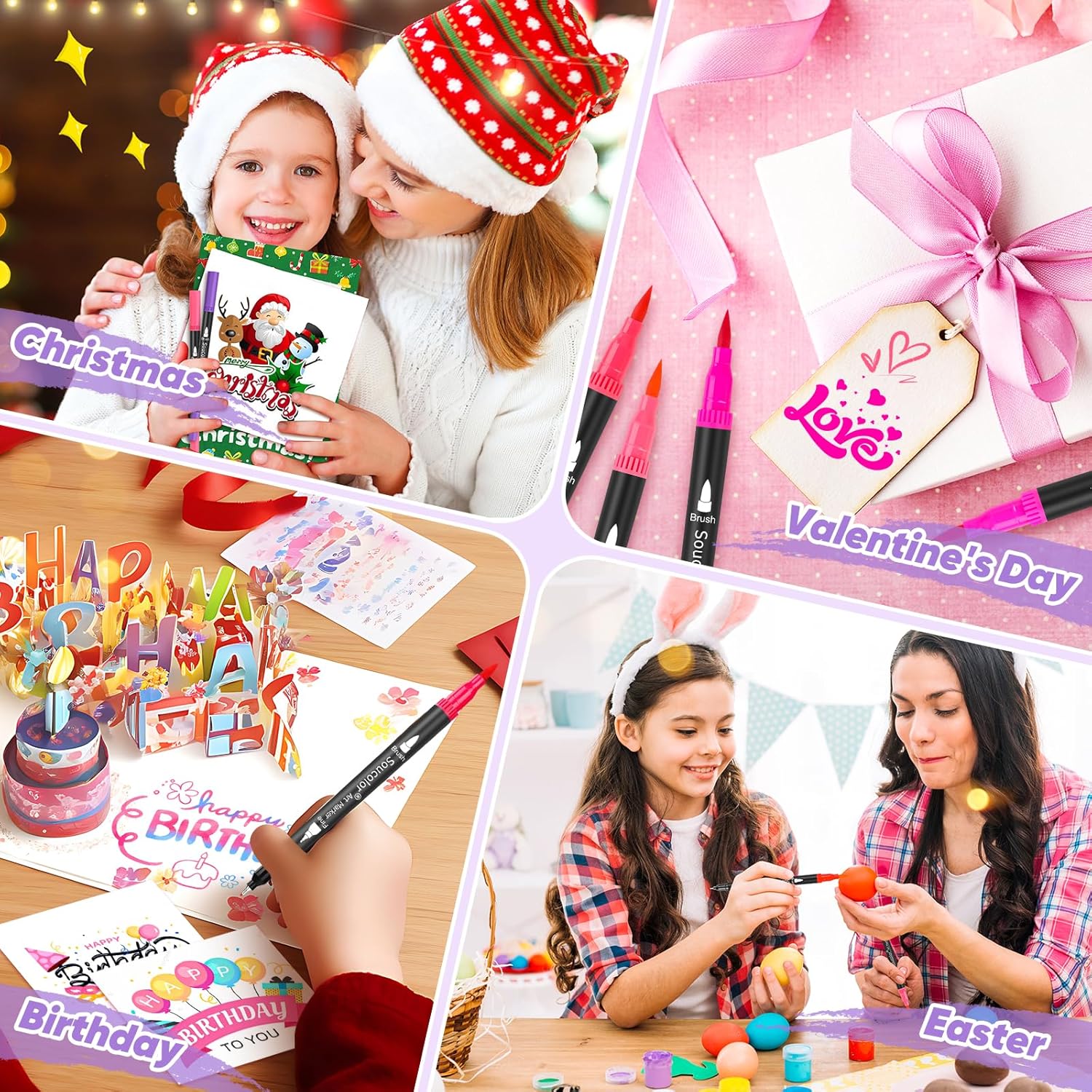 Soucolor Gifts for Women, Gift Baskets for Women Adult, 150 Colors Dual Tip Brush Markers for DIY Journal Kit Coloring Drawing Sketching, Sister Gifts Sets Box for Kids Teens Girls Gift