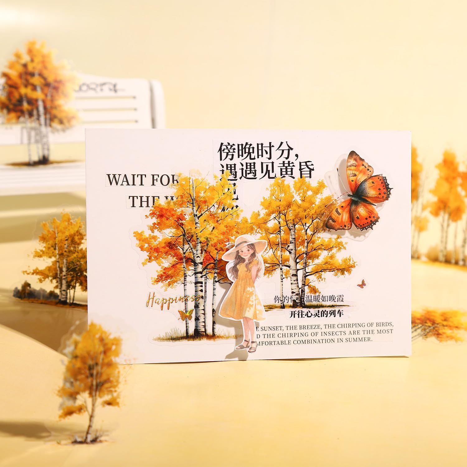 - Seasonal Birch Forest Theme: Explore the beauty of nature with our Birch Grove PET stickers, featuring a variety of birch trees in different seasonal settings. From the vibrant colors of autumn leaves to the fresh greens of spring, these stickers bring the serene charm of a birch forest to your creative projects