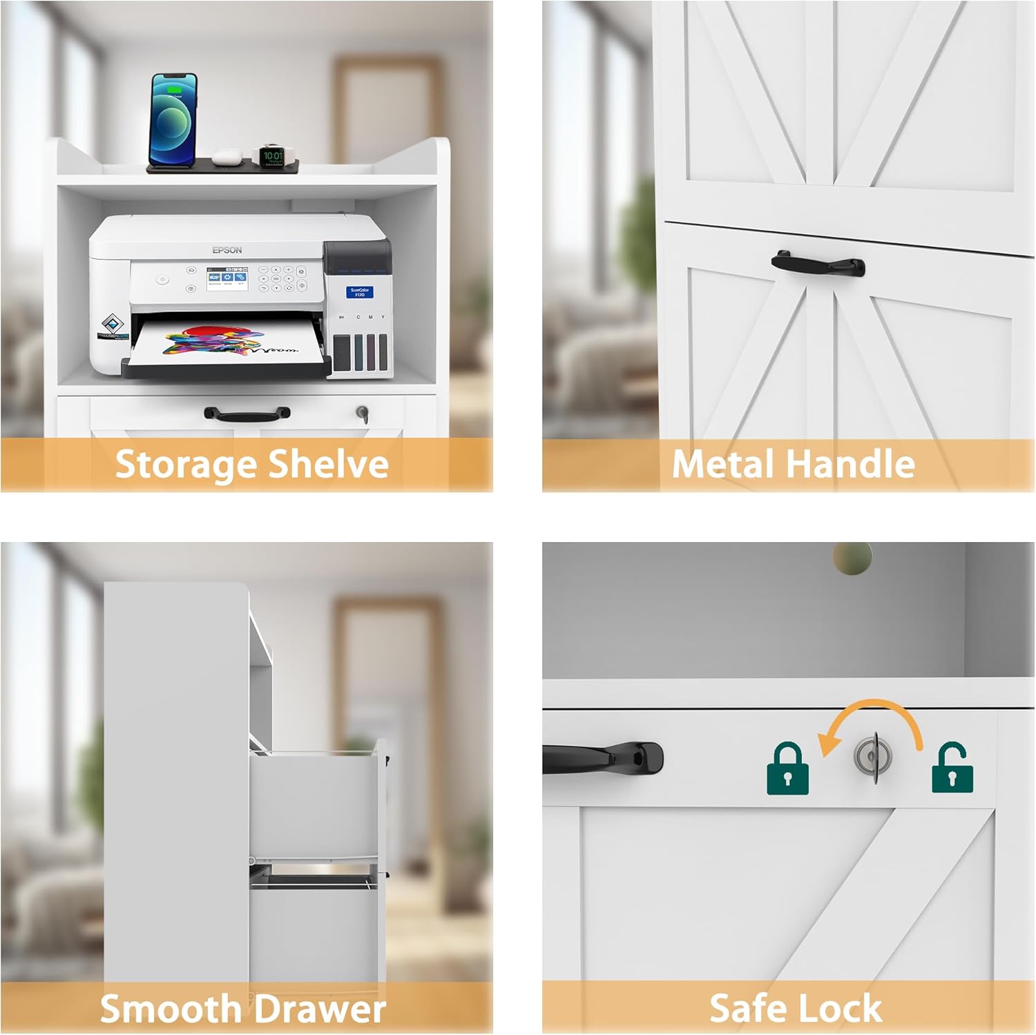 - ăFarmhouse Style Filing CabinetsăThis white 2 drawer file cabinet with lock features matte iron-tone metal pulls for a vintage opening and closing method. The unique pattern in this modern cabinet, creates a clean and natural style.