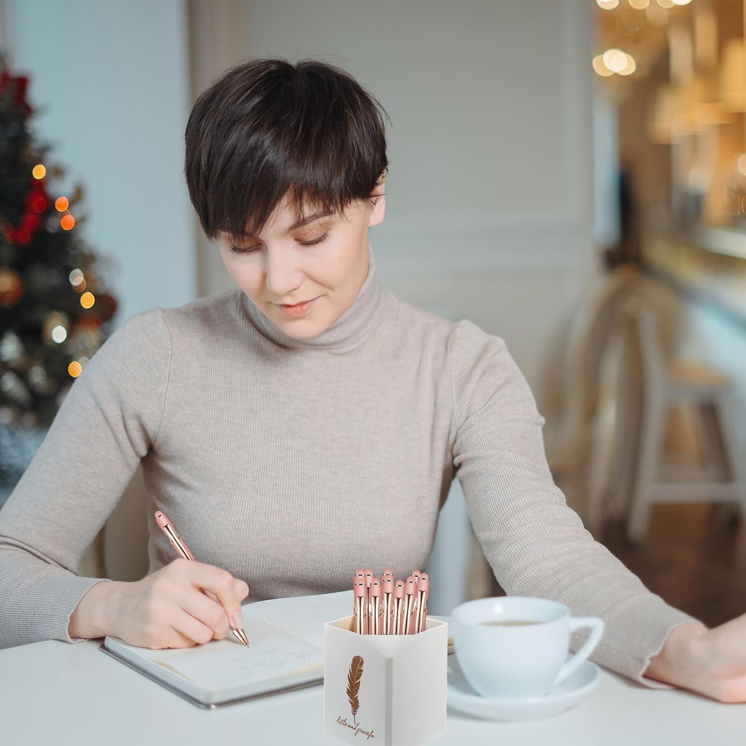 Zonon 38 Pieces Rubberized Ballpoint Pen with Stylus Tip Stylish Metal Pen Capacitive Styli with Soft Rubberized Grip, Black Ink for Most Devices(Rose Gold)