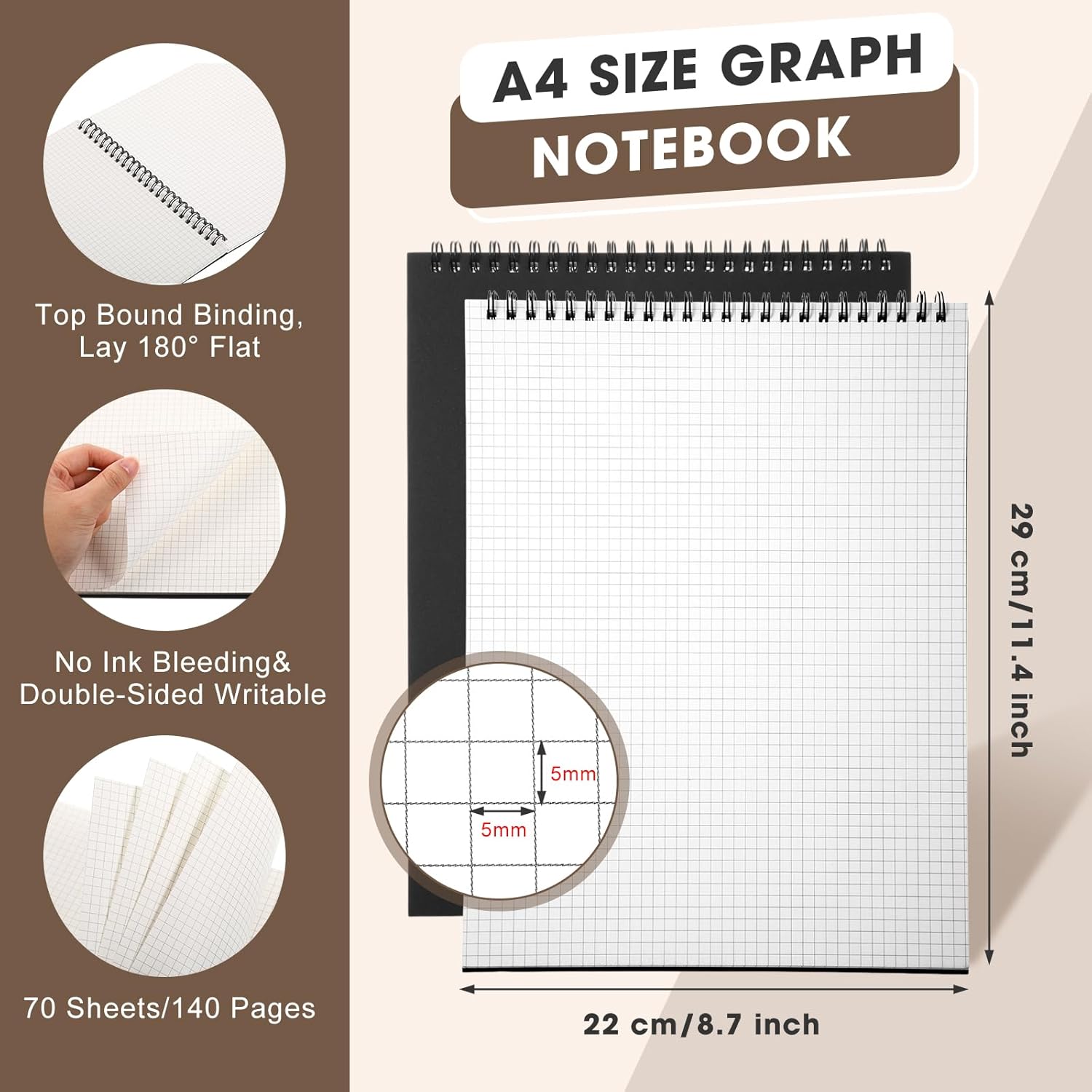 - What You Will Get: you will receive 2 pack graph paper spiral notebooks, each size is about 8.7 x 11.4 inches/ 22 x 29 cm, 140 pages/ 70 sheets per notebook; These notebooks slip easily into a backpack and are easy to carry along; They are suitable for office, business, school, and are ideal gifts for friend, family, or business colleagues
