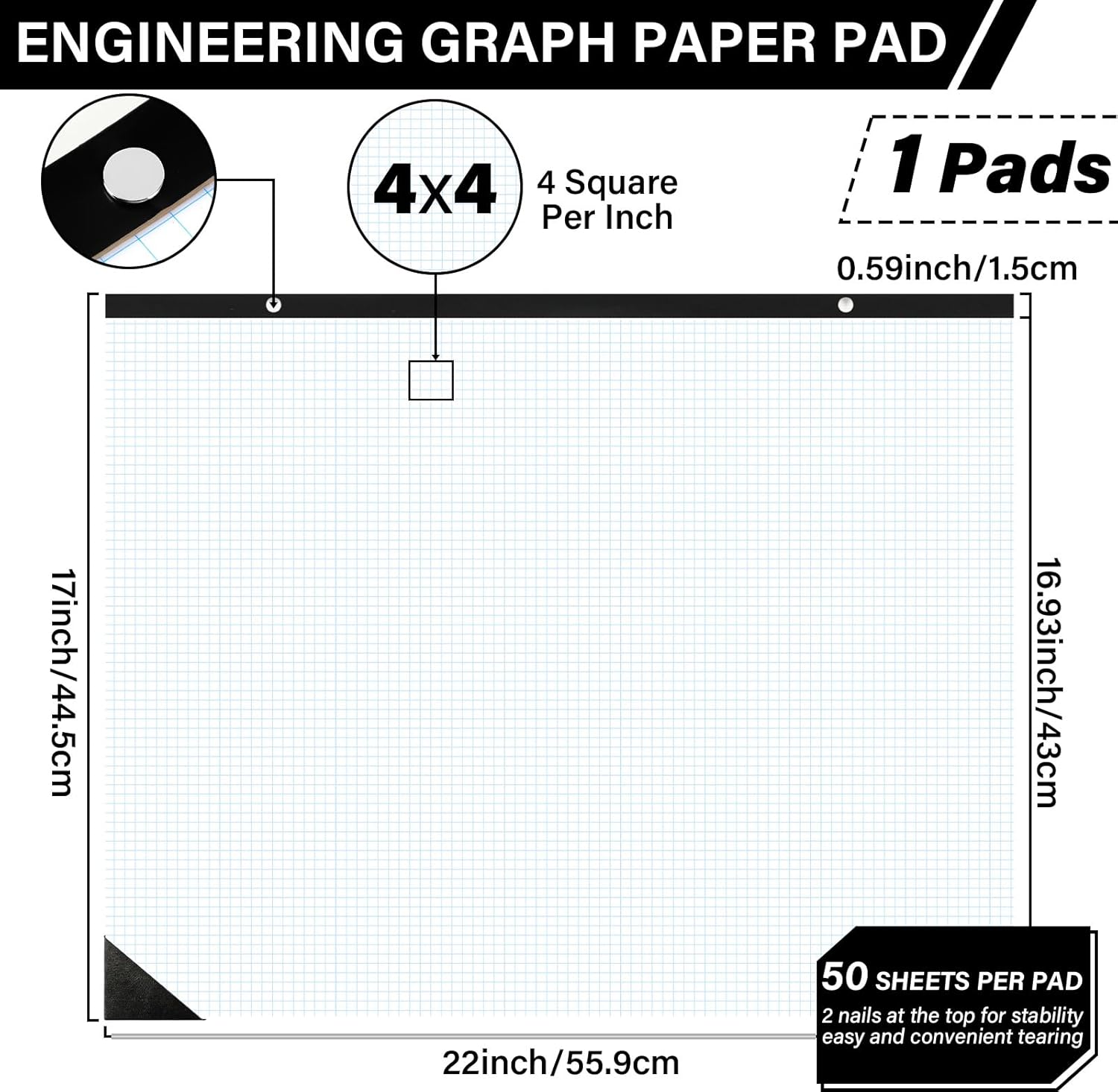 - Graph Paper 1/4 Inch Grid: the page size of sturdy graph desk pad is 22 x 17 inch/ 55.9 x 44.5 cm, and the blueprint paper pad with 4"x4" quad rule lines on this pad will work great for blueprint drawings, engineering, drawings, construction, drafting, planning and to plot graphs, diagrams and statistical data etc.