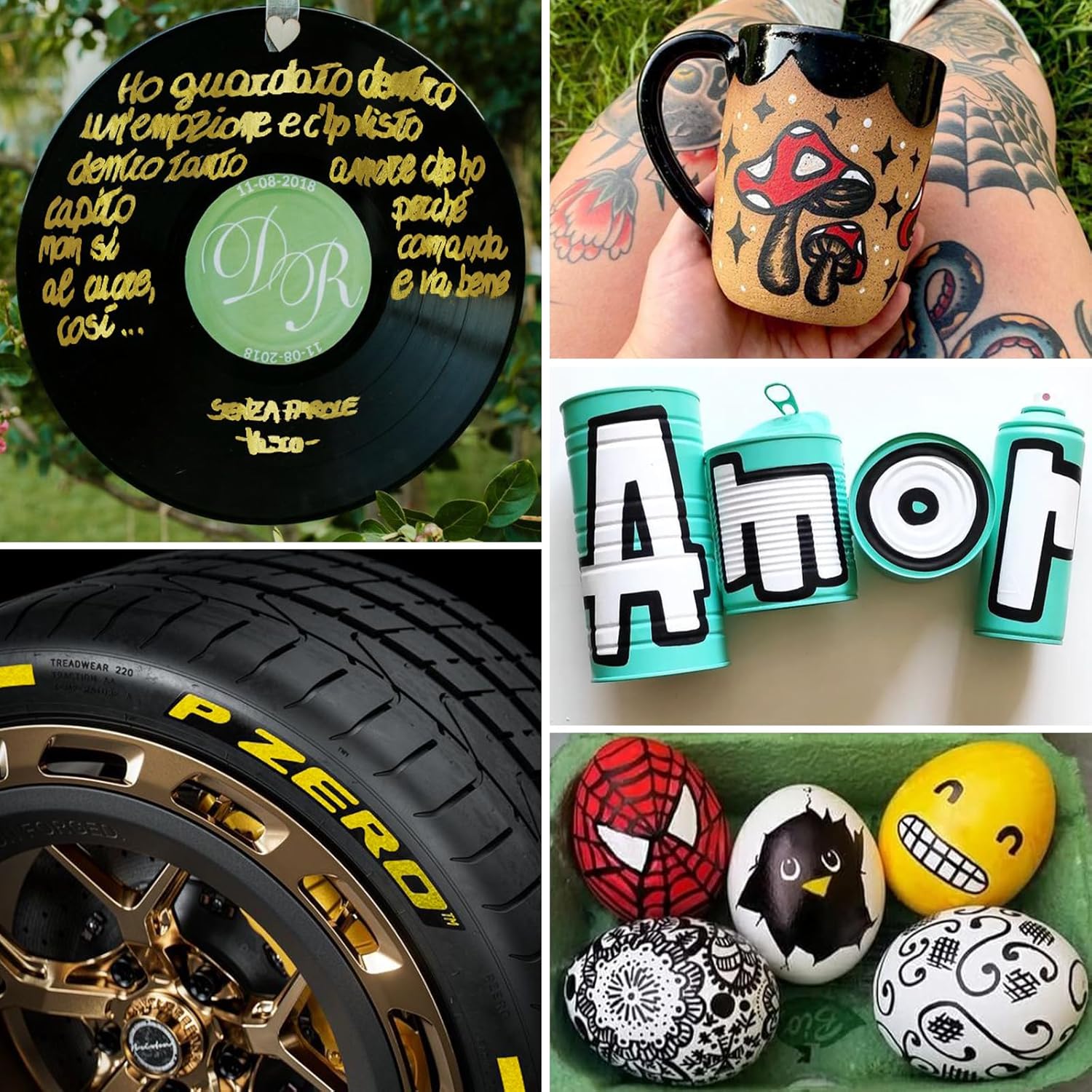 - SUITABLE FOR VARIOUS SURFACES, PERMANENT AND NON-FADING: Acrylic paint pen can be used on rocks, canvas, wood, fabric, glass, metal, ceramic, plastic, leather, tires, and any other material surface for creative doodling and marking. The paint markers are filled with an extra-large capacity of 5ml permanent ink, featuring waterproof and colorfast properties. They are perfect for creating memorable gifts or crafts, ensuring that the artwork can be preserved permanently for a long time.