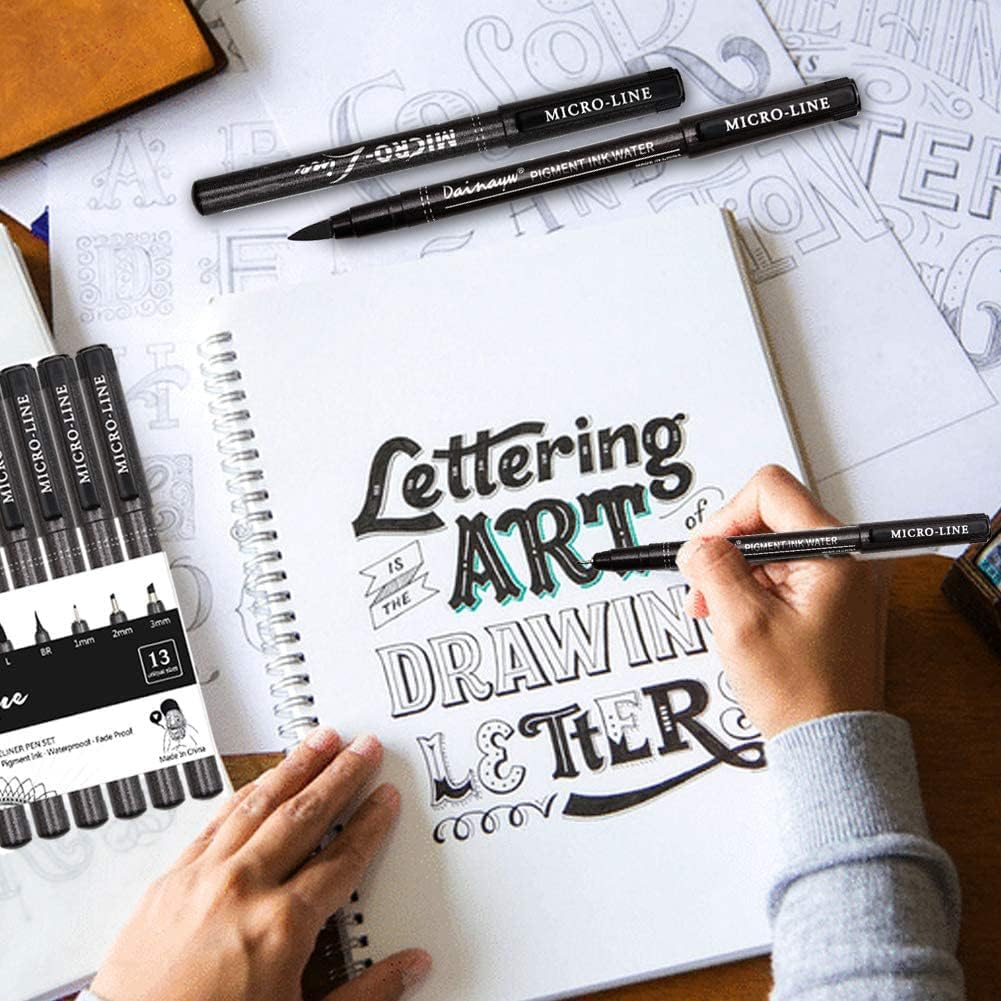 - This set of 13 micro-line pens is a good choice for beginners in painting, sketching, writing, drawing, lettering, illustration, scrapbooking, and bullet journaling. Customer satisfaction is our number one priority. If in any unfortunate situation the fineliner ink pens are inoperable, damaged, leaked, please simply request replacement