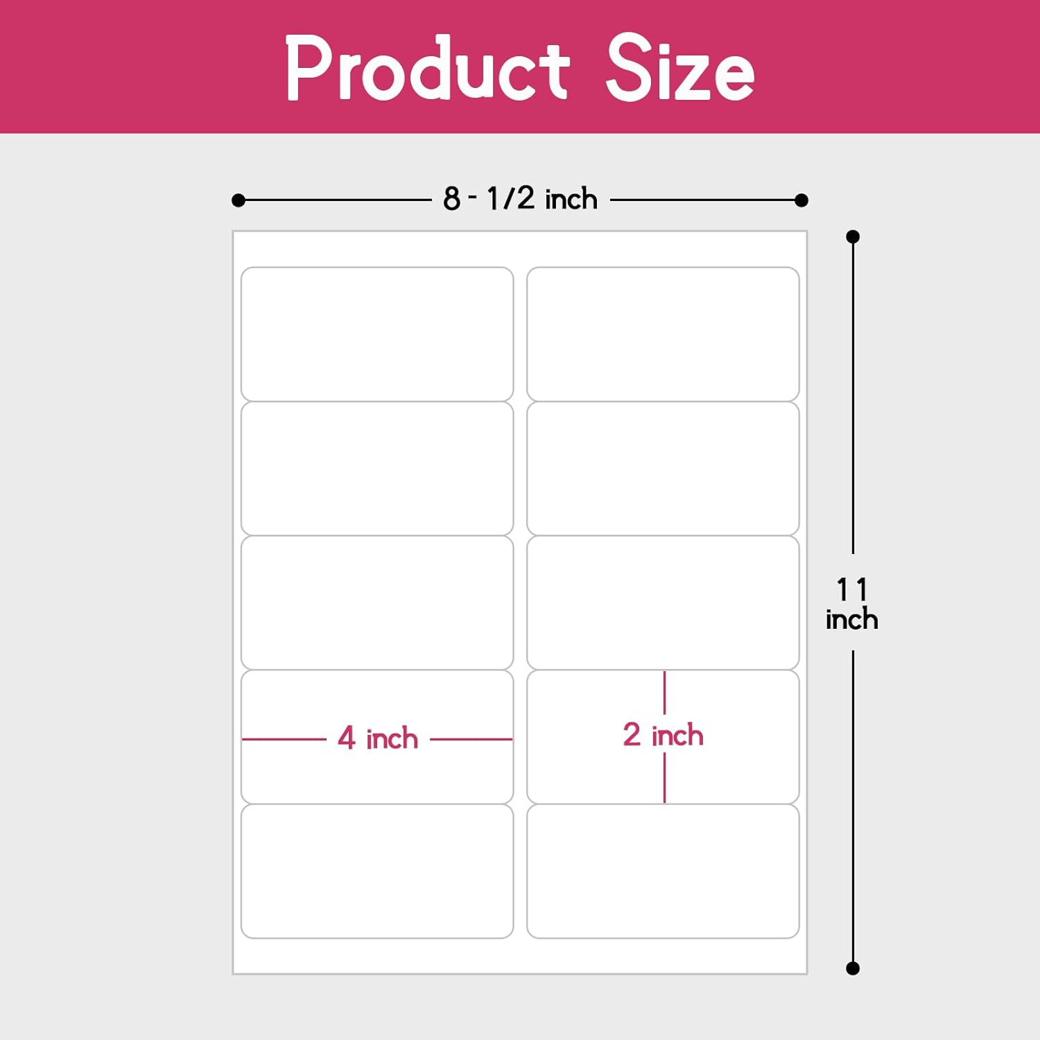 - Specifications: Each label size: 2 x 4 inch, 10 Up shipping address labels, 10 labels per sheet, 100 sheets, 1000 Labels.