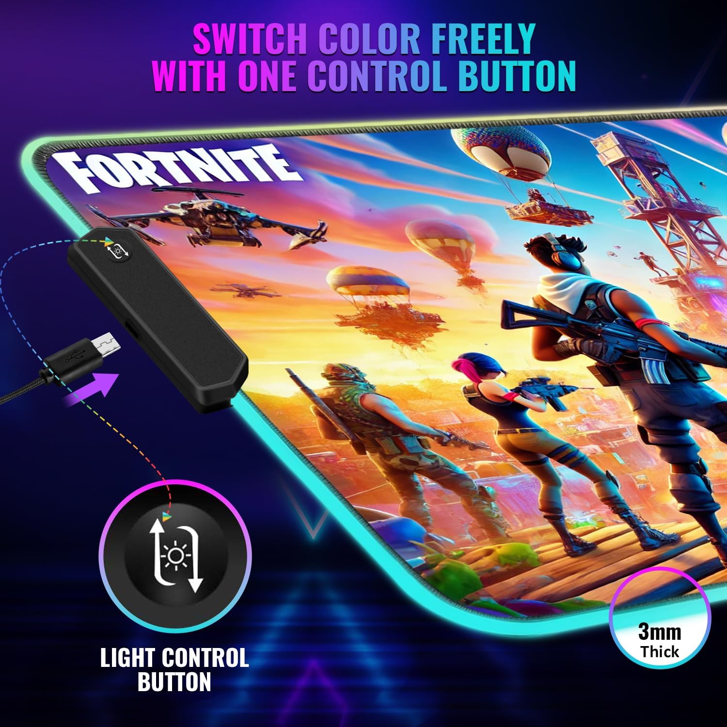 Gaming Mouse Pad - Desk Mat Gaming Mouse Pad , Medium Extra Large Extended Big Long Huge XL XXL and XXXL RGB LED Light Mousepad For a Computer , PC Mats Mousepads Battle Royale Frenzy