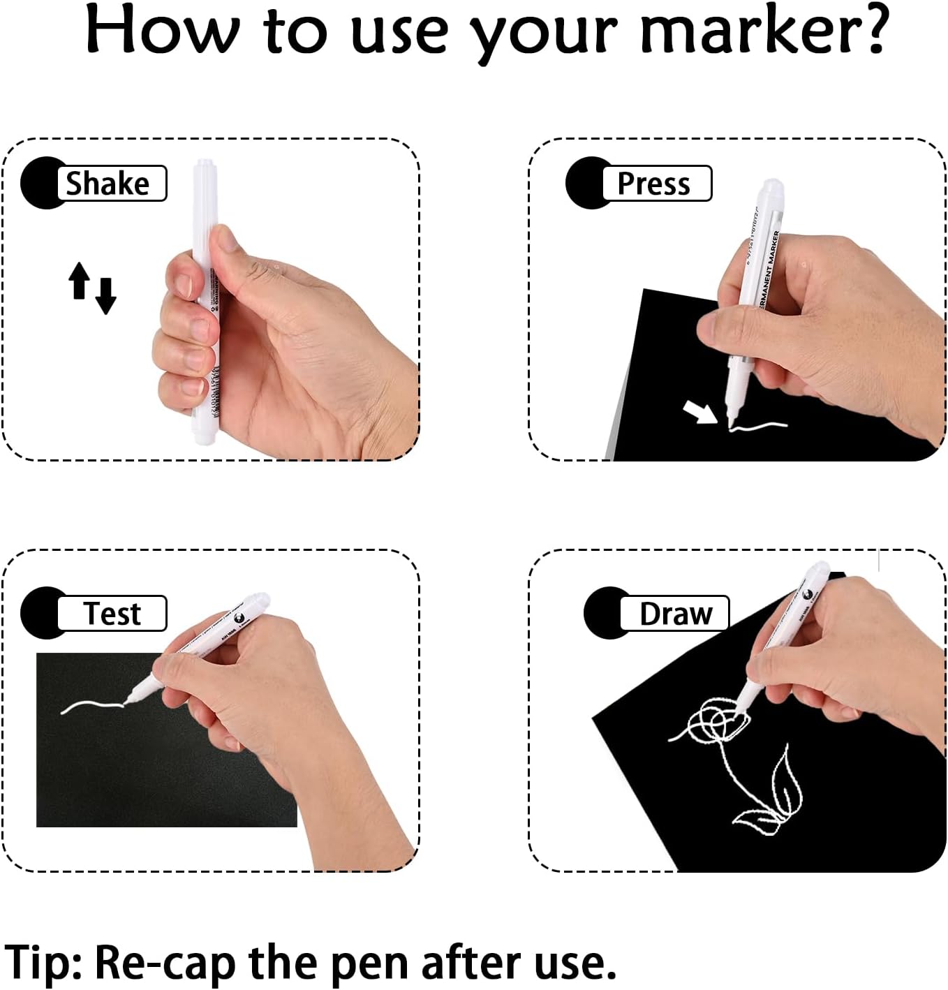 - 【Work on Various Surfaces】 --- From metal, glass, and ceramic to wood, fabric, and black paper—these markers adapt to many material. Personalize mugs, phone cases, shoes, photo frames, and more!