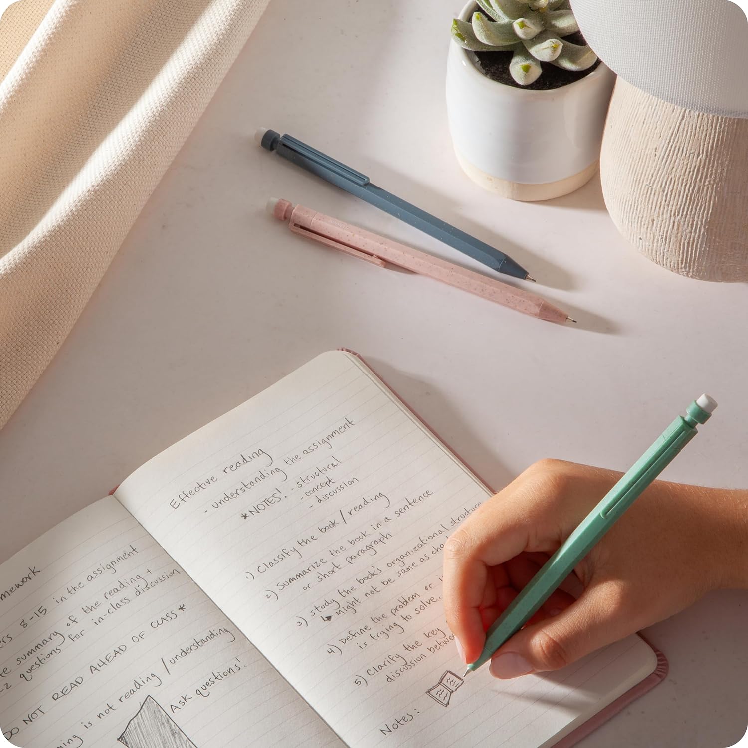 - SOPHISTICATED DESIGN: Constructed from plant-based materials, this colored 0.7 mechanical pencils pack features vibrant hues of green, fuchsia pink, and blue, making them a great addition to school supplies
