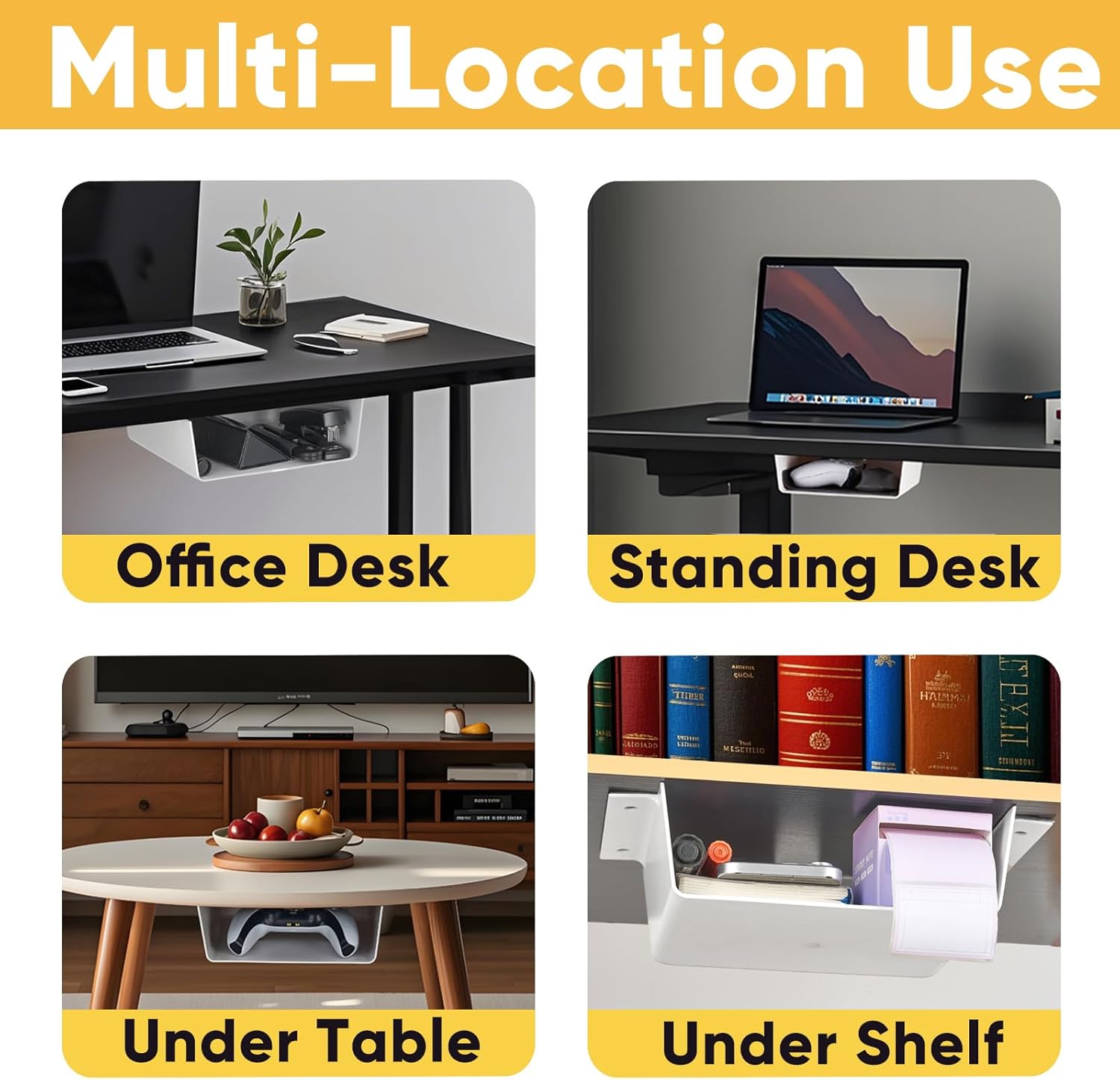 - ăEASY INSTALLATIONă Featuring both adhesive and pre-drilled screw holes, this under desk organizer is easy to install. Whether you choose the adhesive under desk method for a quick setup or screws for added durability, it's a breeze to mount