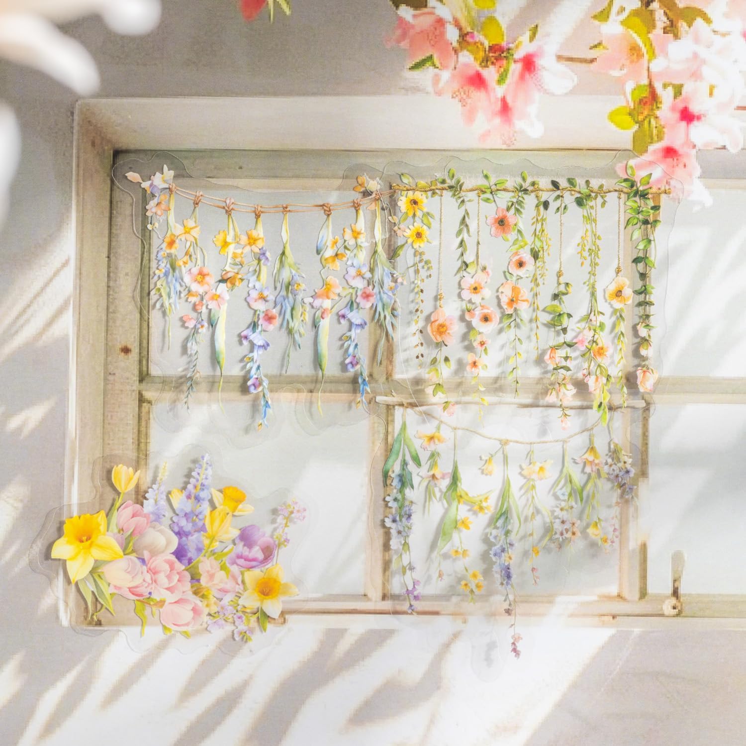 - Charming Floral Aesthetic: Each set includes 60 vivid PET stickers with different hanging flower designs, ideal for adding a touch of nature to scrapbooks, journals, and art projects