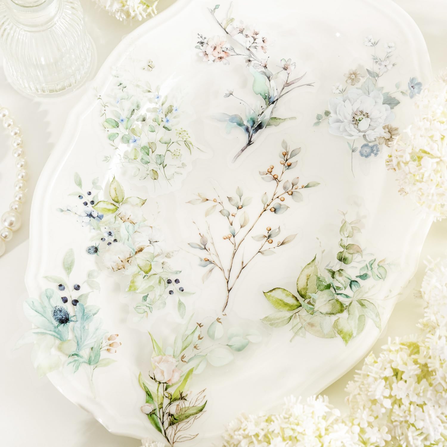 Floral Branch PET Stickers Set, 120PCS Botanical Flower Stickers for Scrapbooking, Journaling, DIY Crafts, and Art Supplies