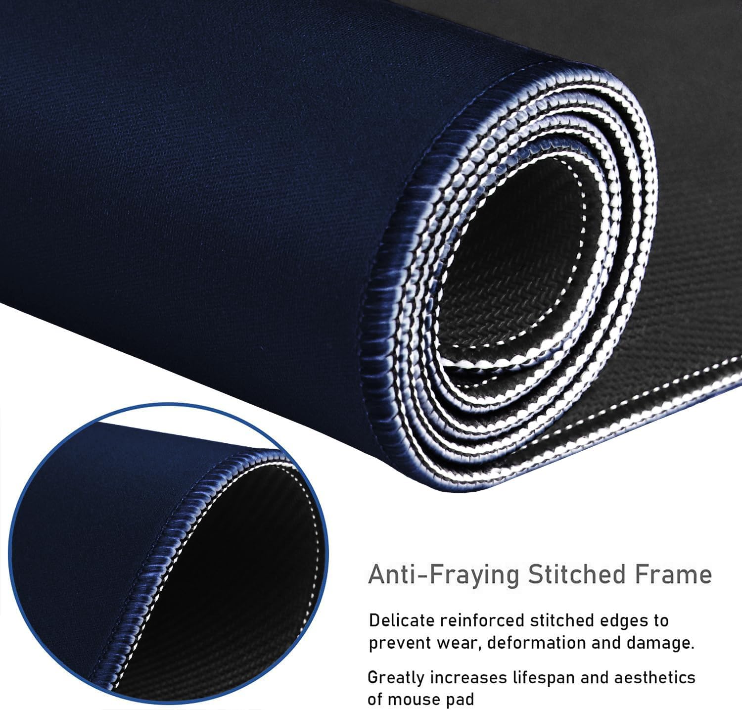 Large Extended Gaming Mouse Pad with Stitched Edges, Durable Non-Slip Natural Rubber Base, Waterproof Computer Keyboard Pad Mat for Esports Pros/Gamer/Desktop/Office/Home - Dark Blue