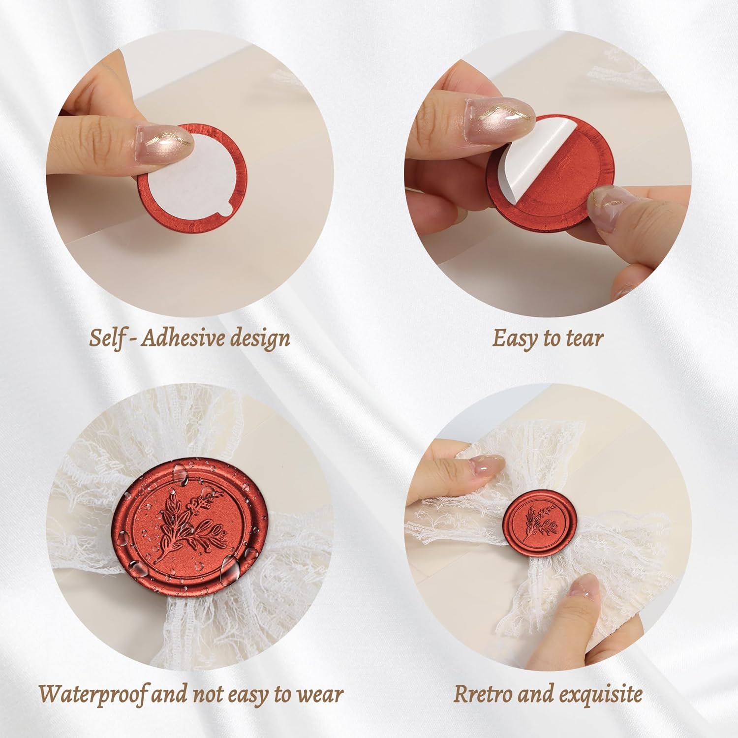 - SELF-ADHESIVE CONVENIENCE: these wax seals come with a strong adhesive backing for quick and easy application to any surface. Simply peel and stick. Quick and easy to use, saving you valuable envelope sealing time.
