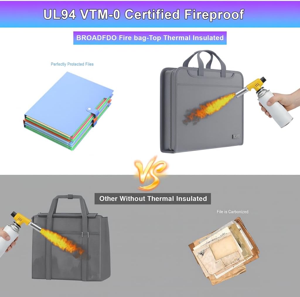- Durable, Portable, & Built to Last Crafted with premium silicone fiberglass for fire and heat resistance, Broadfdo features a reinforced handle, double zipper closure, and dust-proof exterior. Its lightweight, compact design is perfect for school, business, travel, or daily file storage.d.