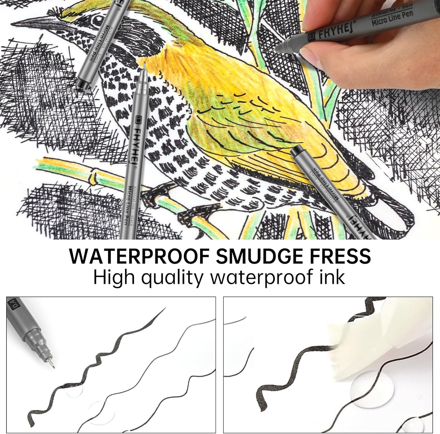 - Waterproof Archival Pigment Ink: Don't let bleed and smudges ruin your artwork. Our archival grade ink are no bleed through, no smear, waterproof, fade resistant, quick drying, water-resistant, sun proof, photo safe, non bleeding, acid free, non-toxic, odorless and last long. (Note: The ink will resist water when it's totally dry. This process usually takes a few seconds)