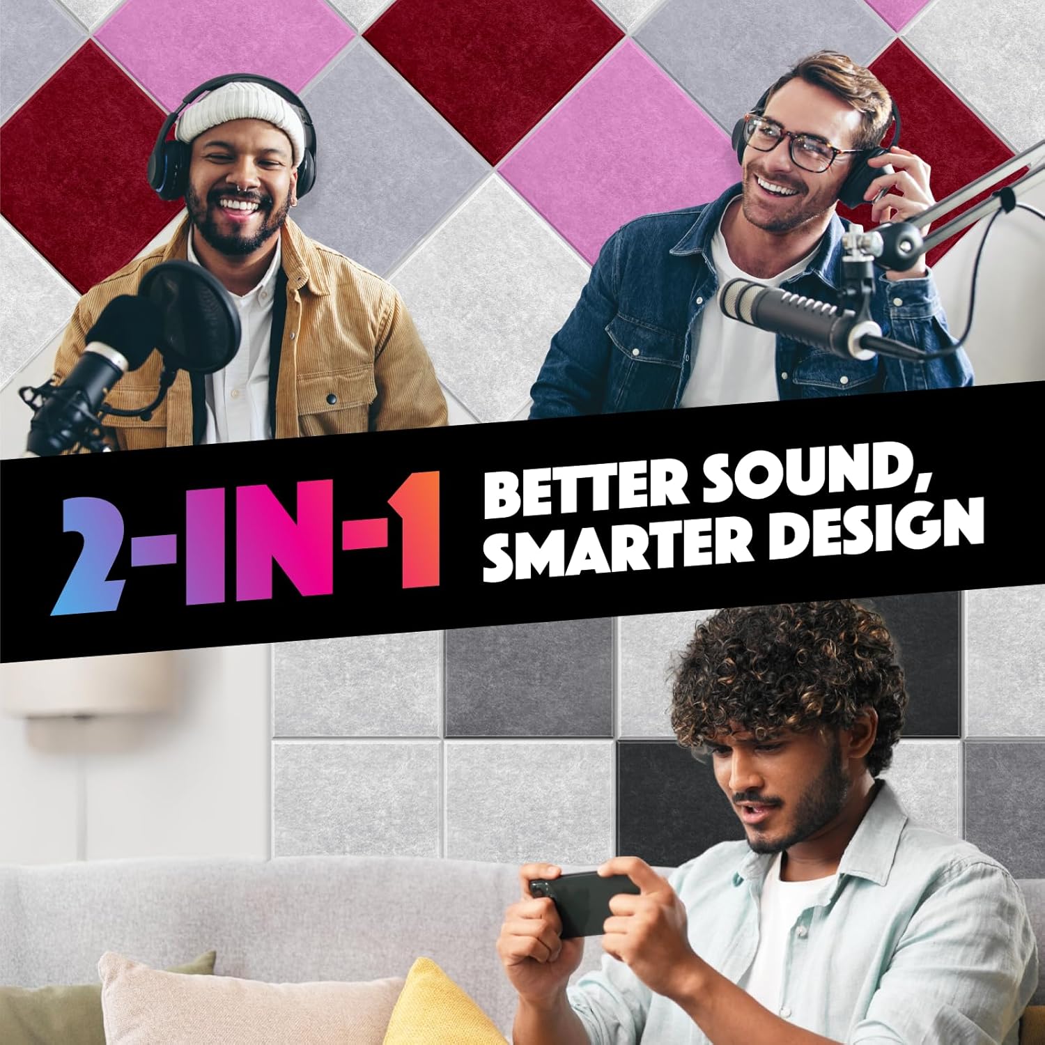- 【High Density Material, Better Better Absorption】These sound absorbing wall panels are made from high density polyester fiber, far more effective at absorbing sound waves than solid surfaces, reducing unwanted noise, echo, and reverberation, creating a more pleasant and clearer listening experience in any room.