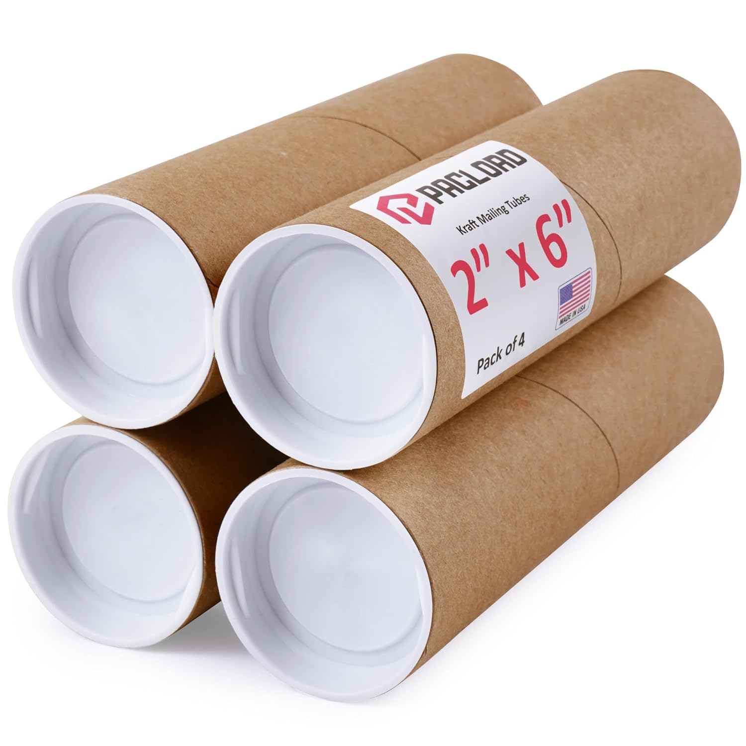 - Sturdy and Durable Mailing Tubes: Paclord Reinforced Kraft Paper Mailing Tubes (Pack of 4) measure 6 inches height and 2 inches in diameter. Each tube comes with 2 caps for secure closure. This cardboard poster tube is made of 3-ply spiral brown kraft paper to ensure extra durability of packaging during shipping