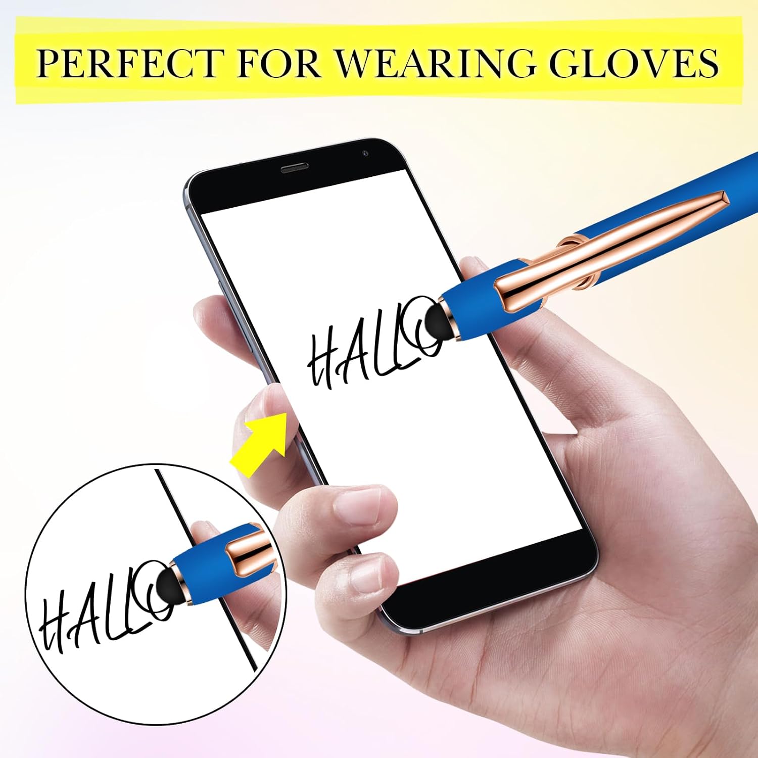 - Modern nice-touch metal pens: these ballpoint pens have a responsive click action, bright finished barrel, matching colored capacitive stylus tip, and ultra-smooth black ink