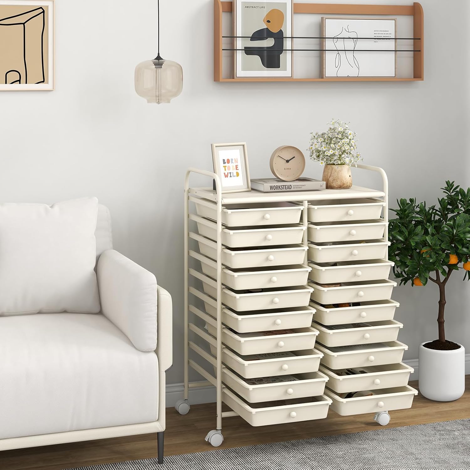 Giantex 20 Drawers Rolling Cart, Mobile Storage Drawer Cart, Classroom Organizer for Office School Supplies Tools Scrapbook Paper Craft Small Printer, Utility Stand on Wheels, Ivory White
