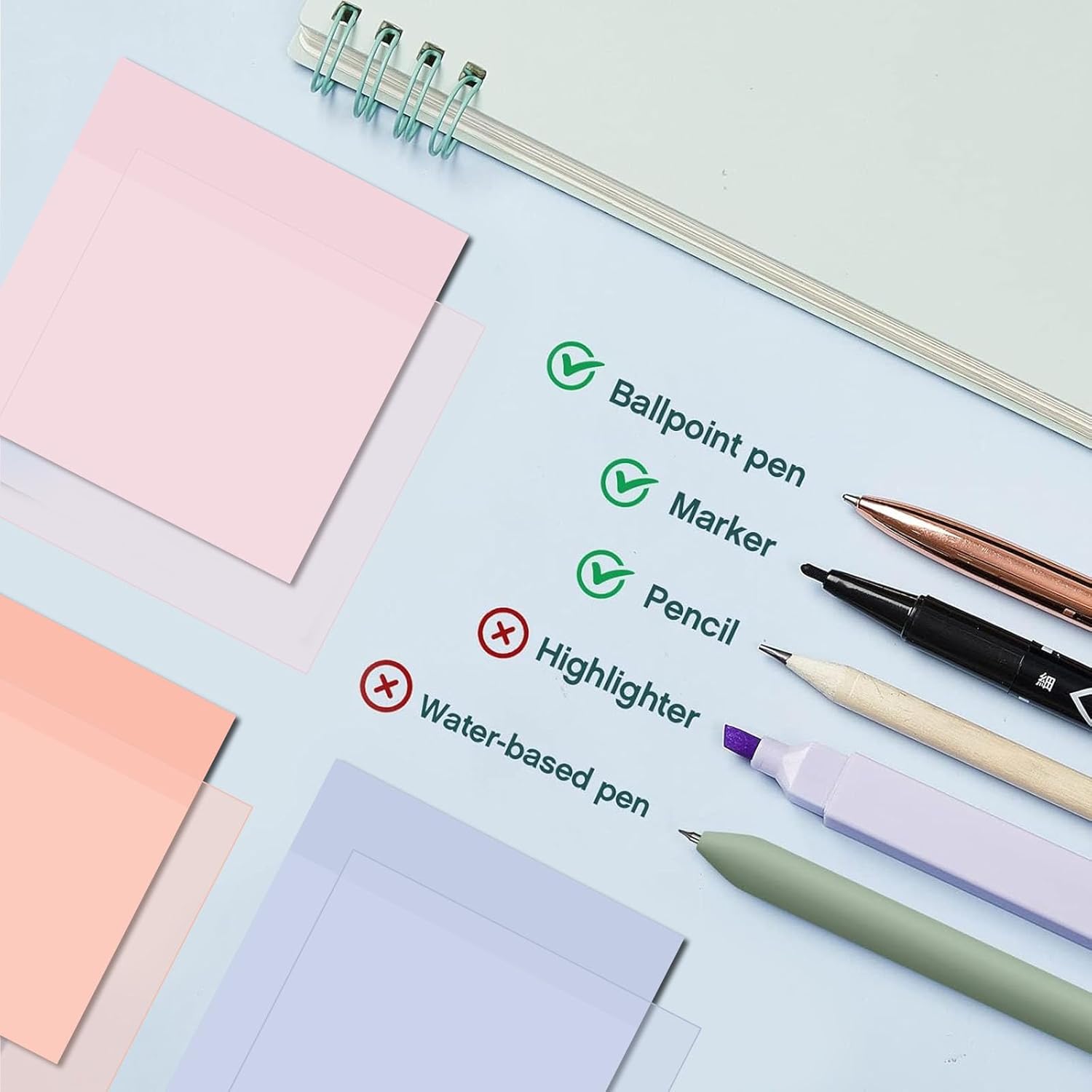 - PET Material: pastel colored transparent sticky notes and index tabs adopt quality PET material, waterproof, durable, colorfast, hard to tear, colorful and transparent design makes a translucent look, not hiding your notes, practical and decorative; The annotation sticky notes will not leave any residue on the page, you can be written on the information and paste it wherever you want