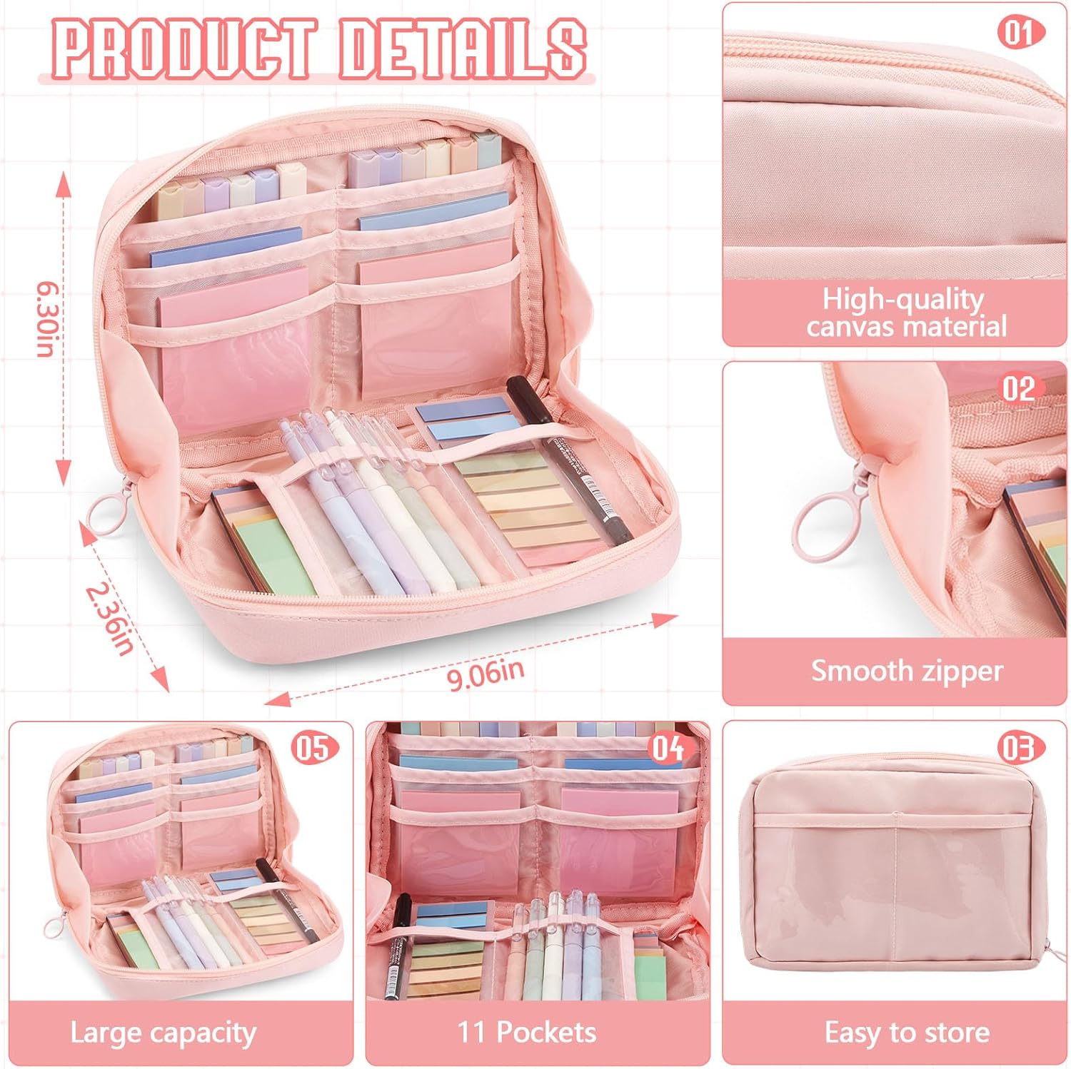 - Daily Use: aesthetic school supplies are suitable for everyday use, including 12 highlighters, 5 ballpoint pens, diverse colors, 1 pink pen case, 1 marker pen, 10 pads of square sticky notes (500 sheets), 1 pad of sticky index tabs (200 sheets), gratifying your daily use and replacement demands for journal, notepad, work, study notes, bible study available for family, office, travel and so on