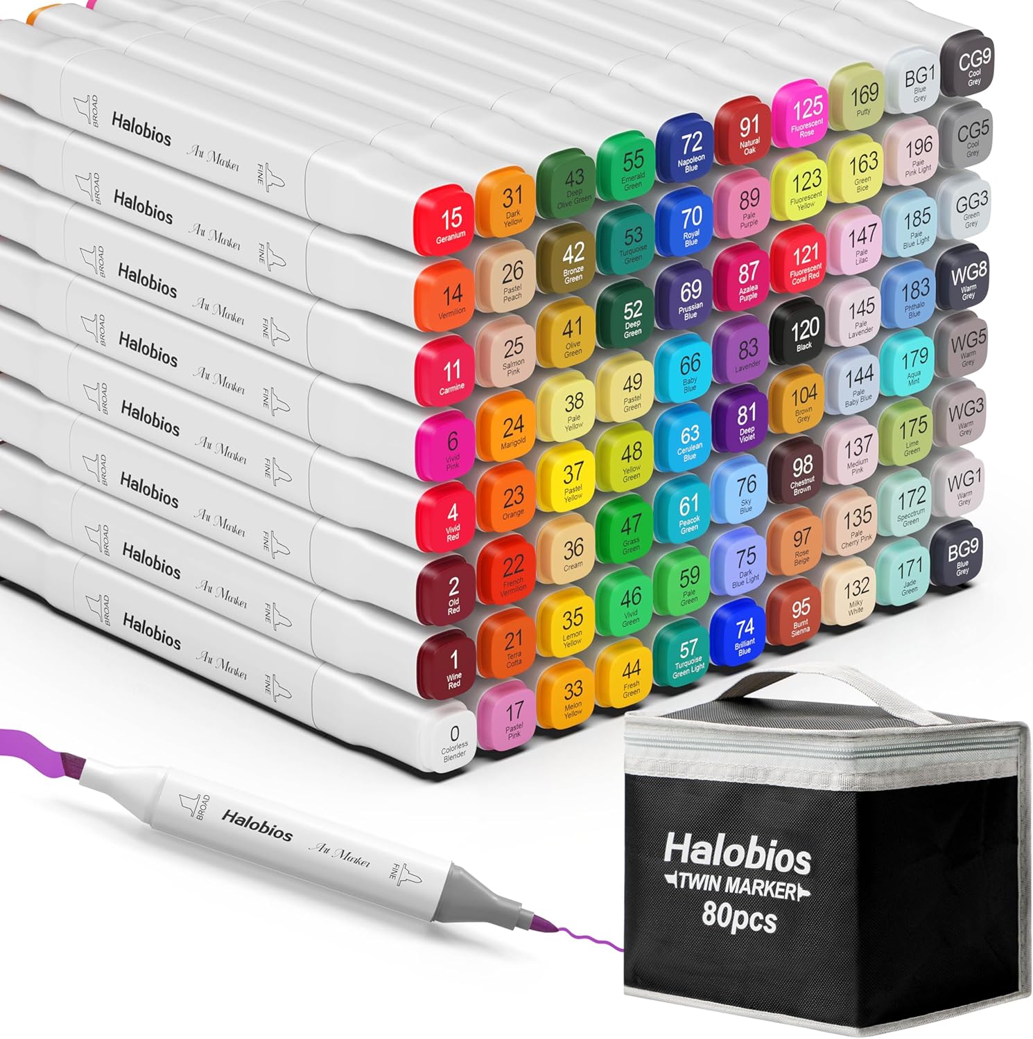 - 80 VIBRANT COLORS:This set includes 79 vibrant colors, offering everything from soft shades to bold, rich hues. We've also included 1 colorless blender marker to help with seamless blending and layering without leaving streaks. Whether you're blending, shading, or adding intricate details, these markers will inspire your creativity with a full spectrum of colors to bring your artwork to life.