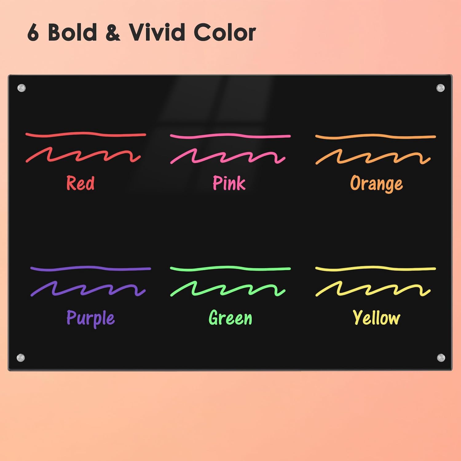 - Bold Neon Colors: Enhanced rollerball tech for quick, uniform ink mix, ensuring vivid, consistent lines on glass, whiteboard, or chalkboards. Perfect for vibrant, eye-catching visuals! Elevate your visual communication!