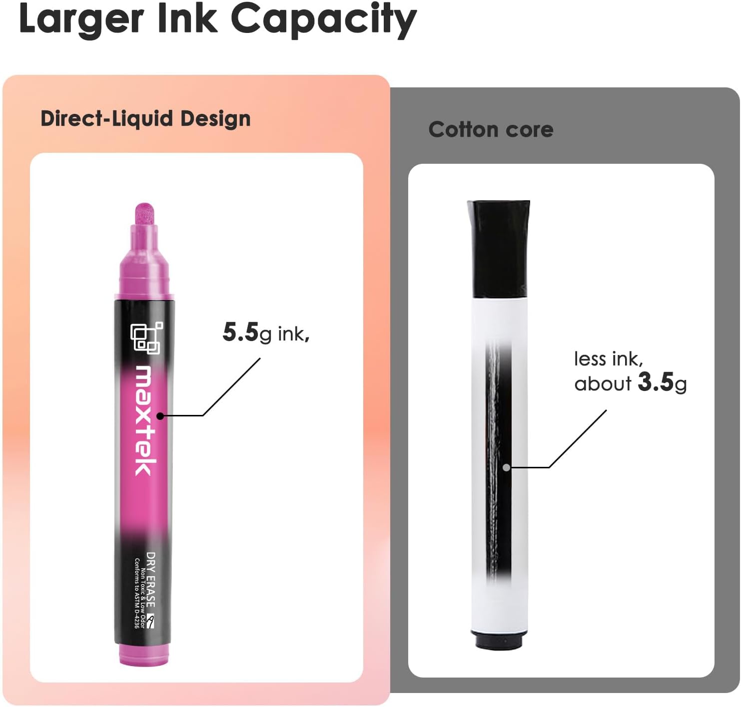 - Effortless Erasure: Maxtek fine point markers with German ink prevent caking, ensure smooth wiping. Easily erase with cloth/eraser for spotless surface. Save time on cleaning! Perfect for classrooms, offices, and home use.