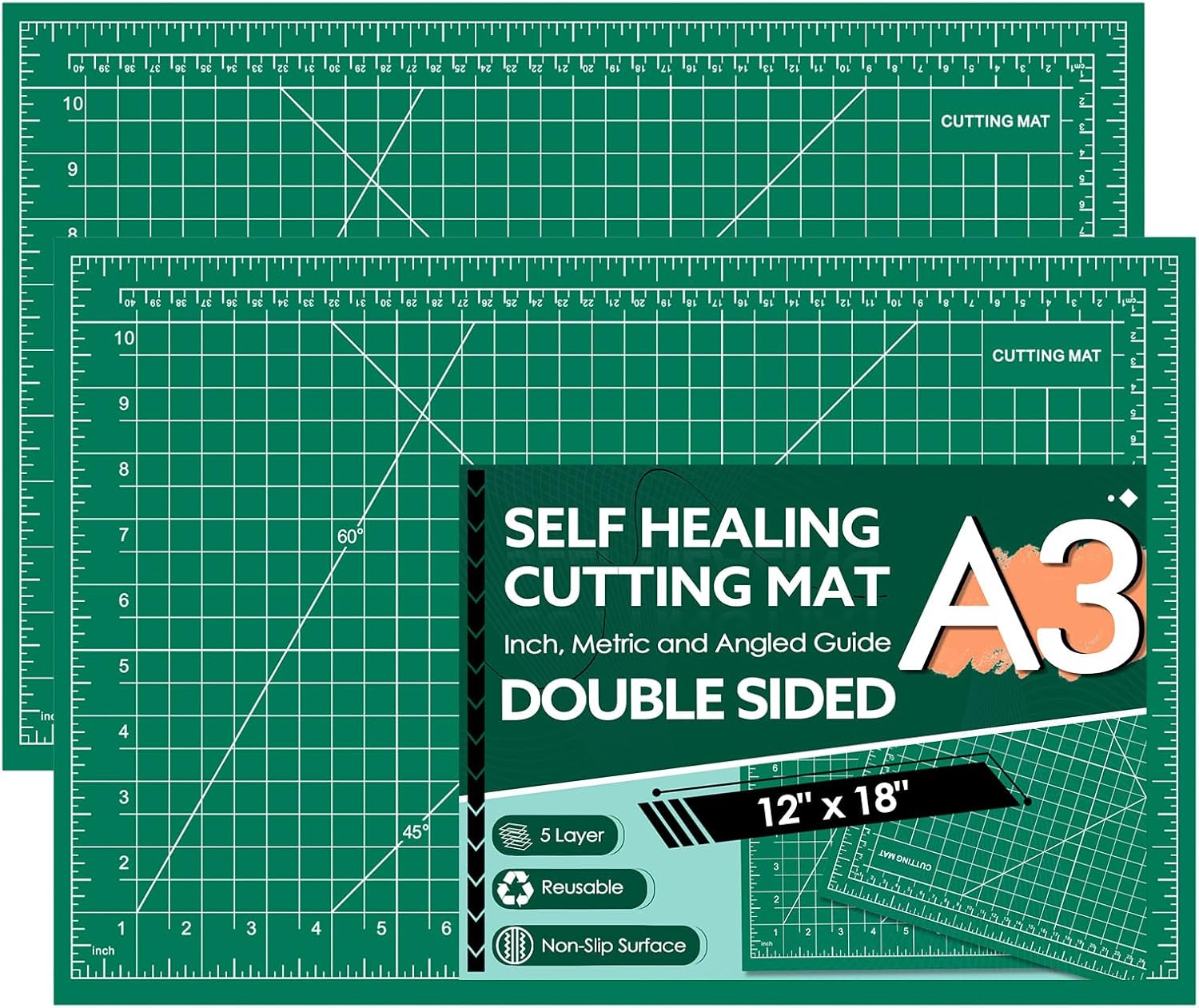 2 Packs Self Healing Cutting Mat 12" x 18" Rotary Cutting Sewing Mat A3, 5-Ply Cutting Board for Crafting, Sewing, Scrapbooking, Quilting and Precision Cutting