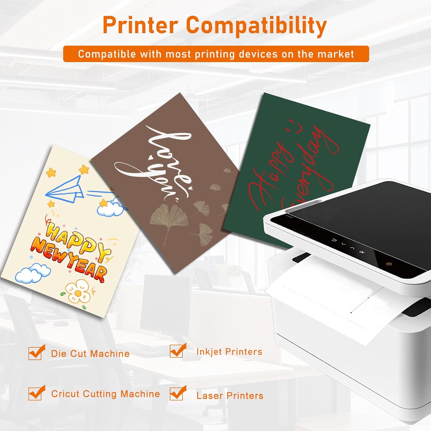 - Printer Compatibility:our thick premium paper card stock is compatible with most types of laser printers, inkjet, die-cutting machines, and cricut cutting machines. Please ensure that your printer can print on 250gsm before ordering