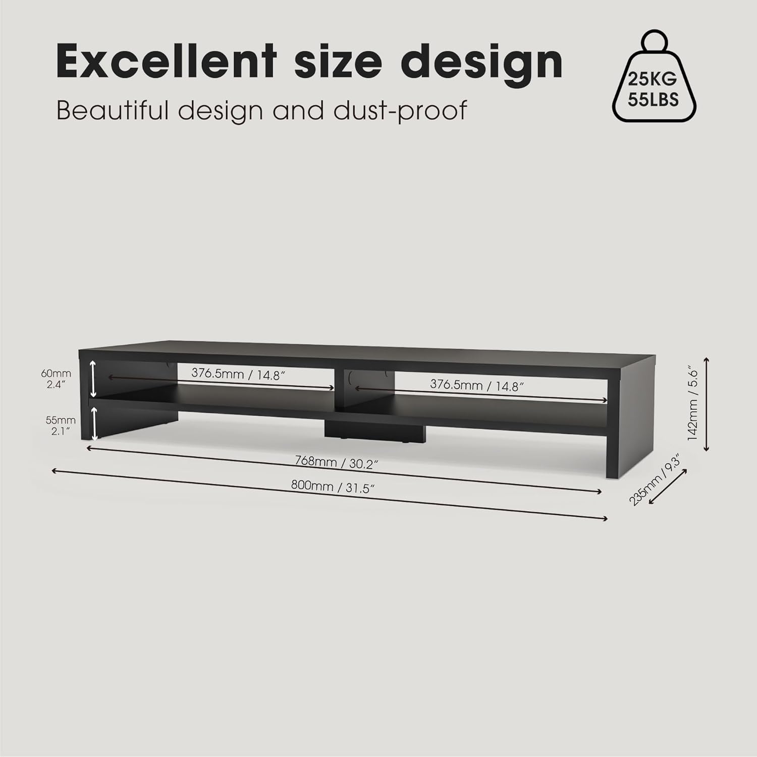 - 【Desk Shelf Organizer】Dimensions: 31.5"x 9.3"x 5.6", designed for monitor setups, this dual monitor stand features 2-tier structure and 2 open compartments to manage cables. Tame your desk chaos: store notebooks, pads, and even a mini plant!