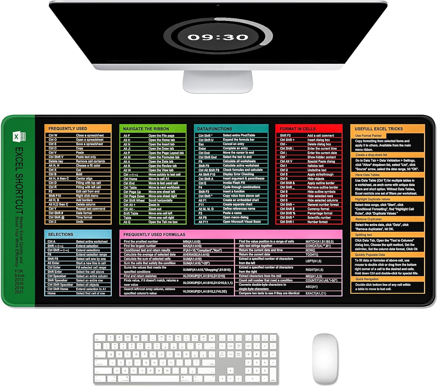 Auhoahsil Large Mouse Pad, XL Gaming Mousepad, Desk Mat for Desktop, Thick Rubber, Big & Long Size, Stitched Edges, Full Desk Pad for Laptop & Computer, Extended 31.5 x 11.8 in, Excel Shortcut