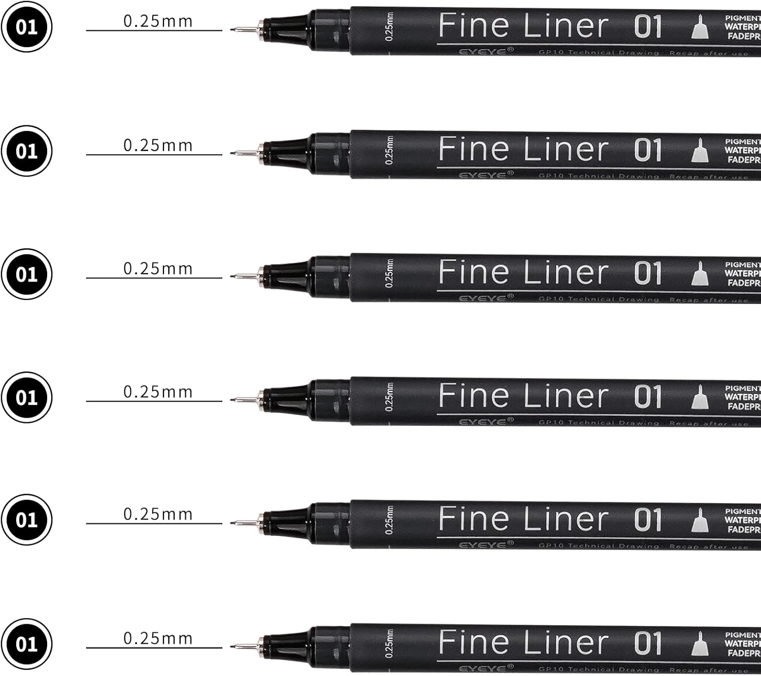 - eyeye Micro Pens, Black Drawing Art Pens,6 Pack 0.25mm Archival Pens Waterproof Ink Set Artist Supplies Archival Inking Markers Sketch Outline Pens, Precision Drawing and Sketching Kit Gift Stuff