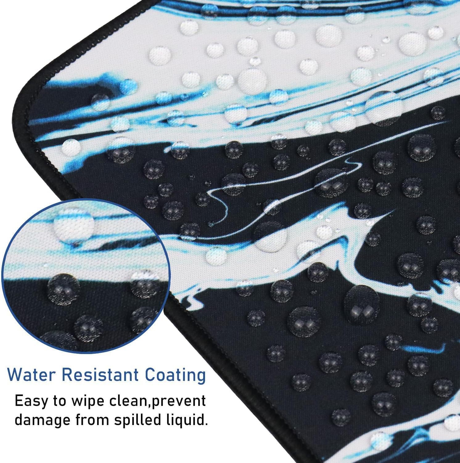 Gaming Mouse Pad with Stitched Edges, Durable Non-Slip Natural Rubber Base, Waterproof Computer Keyboard Pad Mat for Esports Pros/Gamer/Desktop/Office/Home - Marble Cyan