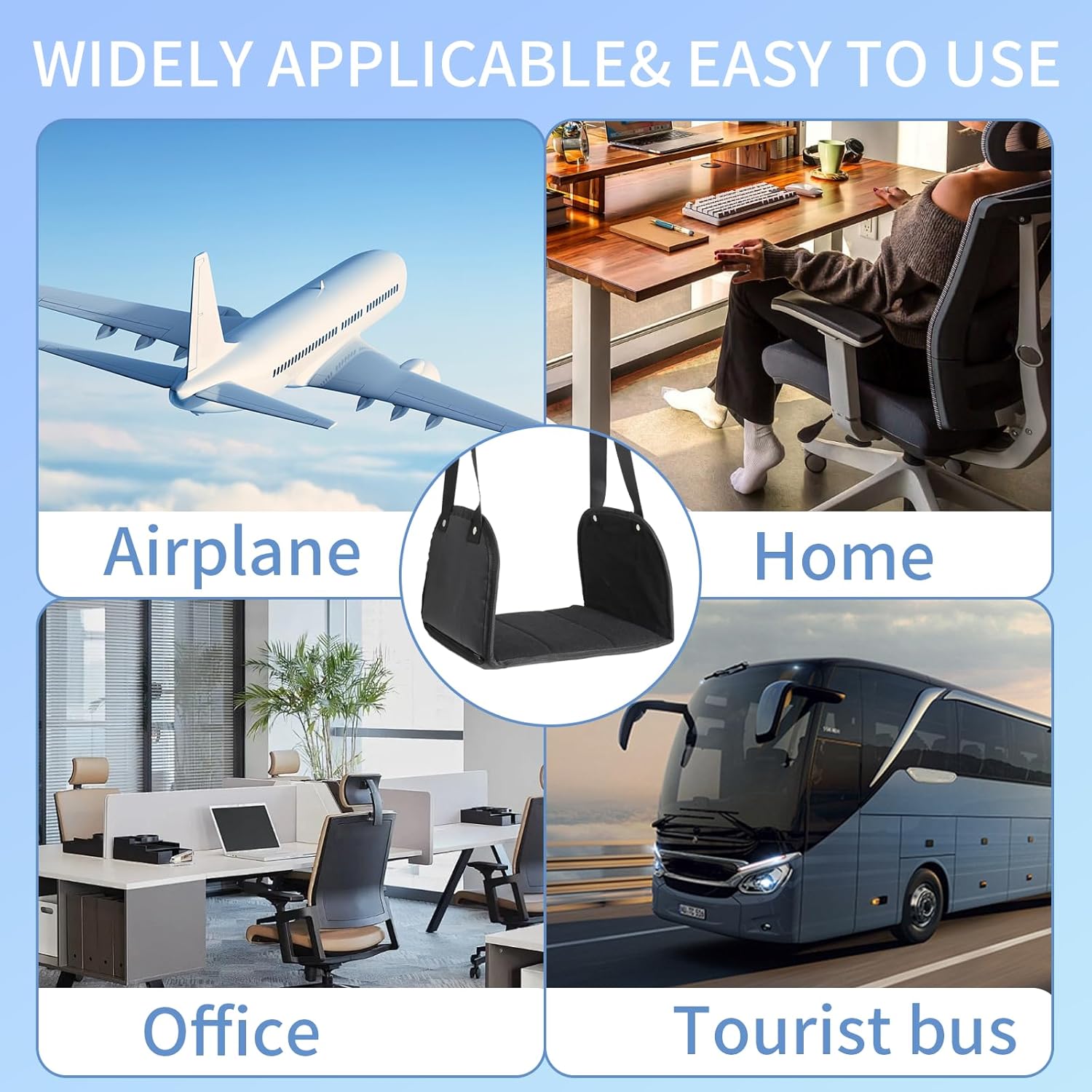 - TRAVEL ESSENTIALS:Relax and relieve pressure during your travels with this comfortable aeroplane foot hammock. Improve circulation in your legs and experience a more comfortable flight. Perfect for use in schools, buses, trains, and on long flights, A must-have for anyone seeking relaxation and comfort while flying.