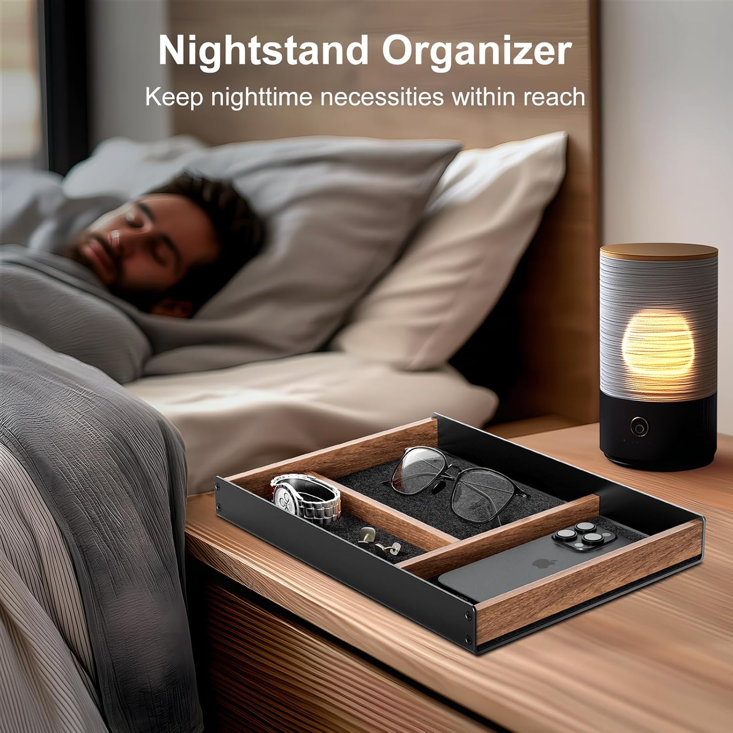 UPERGO Desk Drawer Organizer Tray, Mens Valet Made of Aluminum and Walnut, Aesthetic Desk Accessories for Office Home Supplies