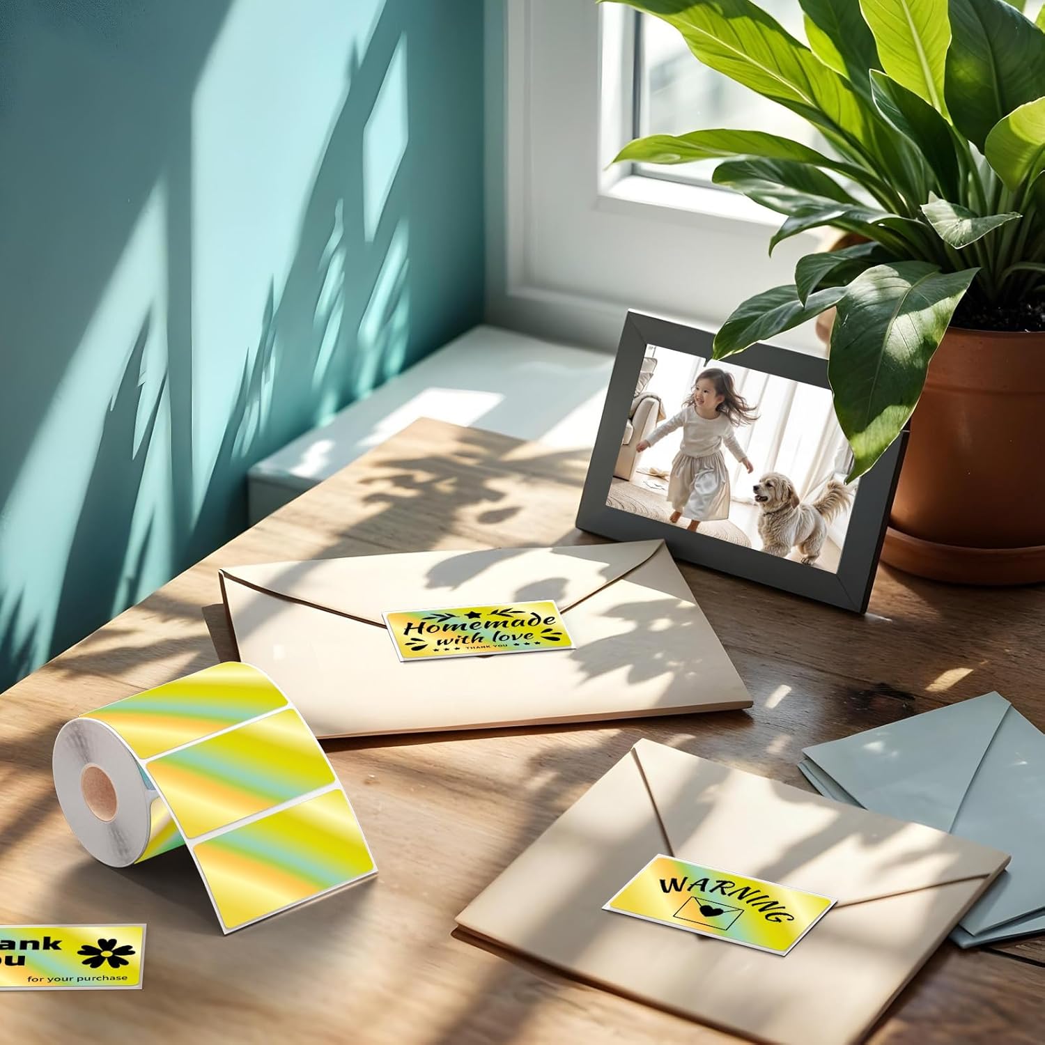 2.25x1.25 Inch Thermal Labels Gold, Holographic Sliver Barcode Thermal Labels for Thermal Printer and Small Business, Multi-Purpose Rectangle Stickers, 500 Sheets/Roll