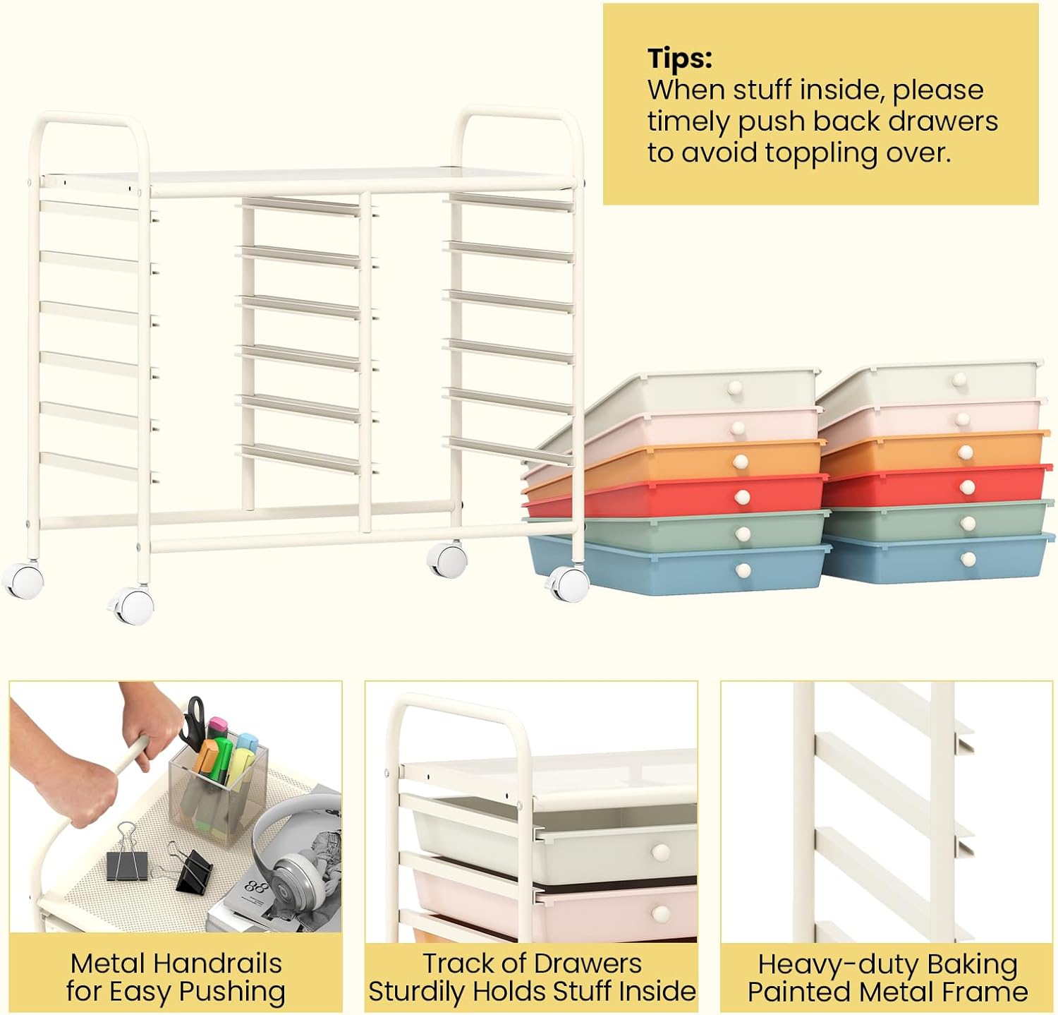 - [Sturdy & Durable Structure]: Crafted of heavy-duty baking painted metal frame, the 12-drawer storage cart provides enhanced support and long-term durability. More, durable PP drawers can withstand the test of time.