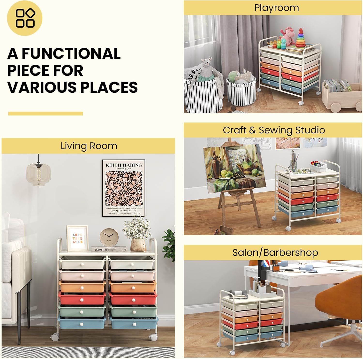 - [Multipurpose Utility Cart]: The drawer cart is a practical and stylish solution for living room storage, playroom storage, craft & sewing storage, salon/barbershop use. Vertical structure and multi-layer design save a lot of space.