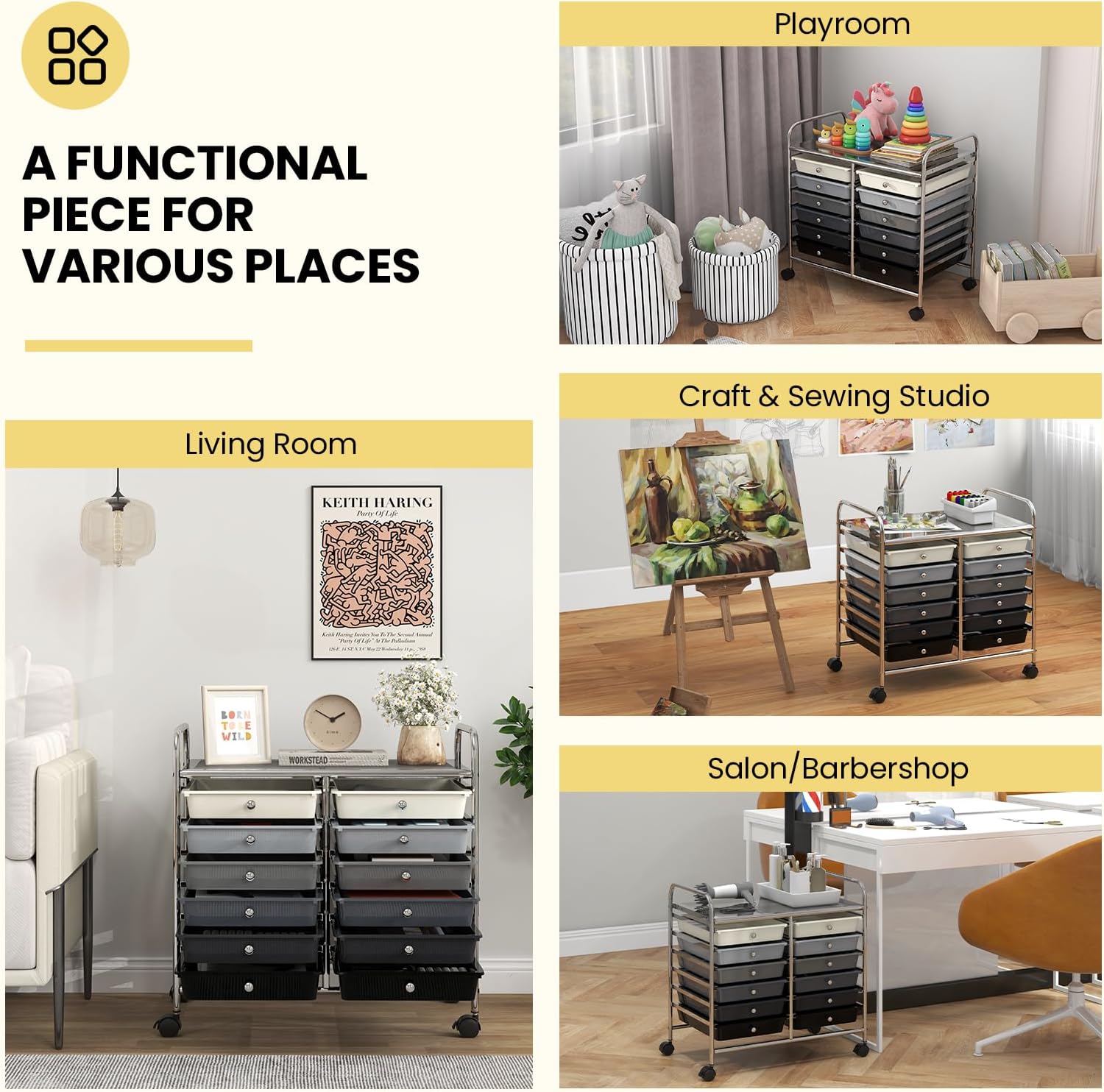- [Multipurpose Utility Cart]: The drawer cart is a practical and stylish solution for living room storage, playroom storage, craft & sewing storage, salon/barbershop use. Vertical structure and multi-layer design save a lot of space.